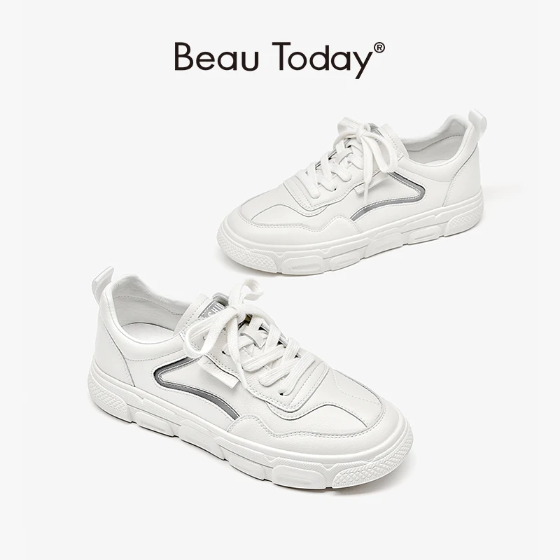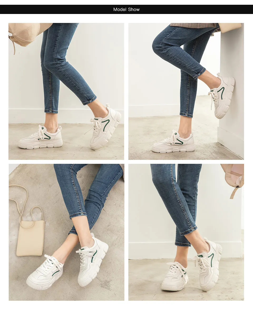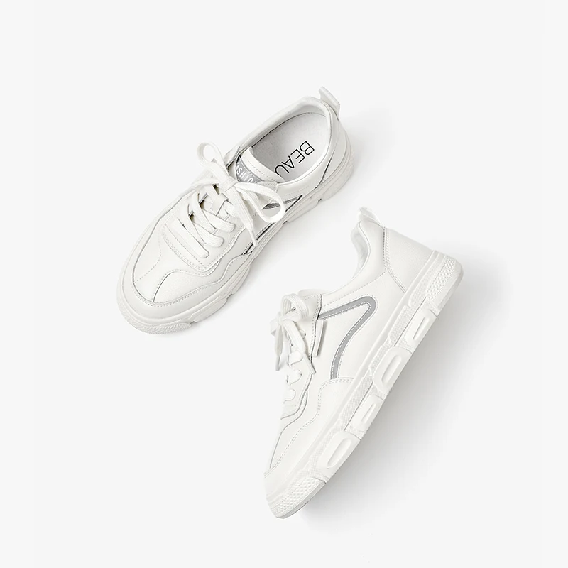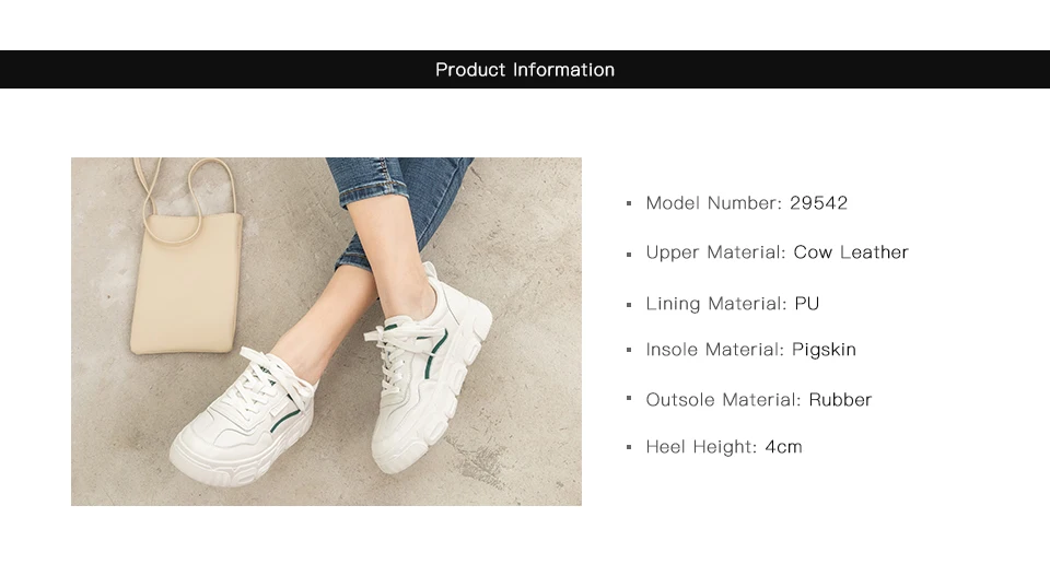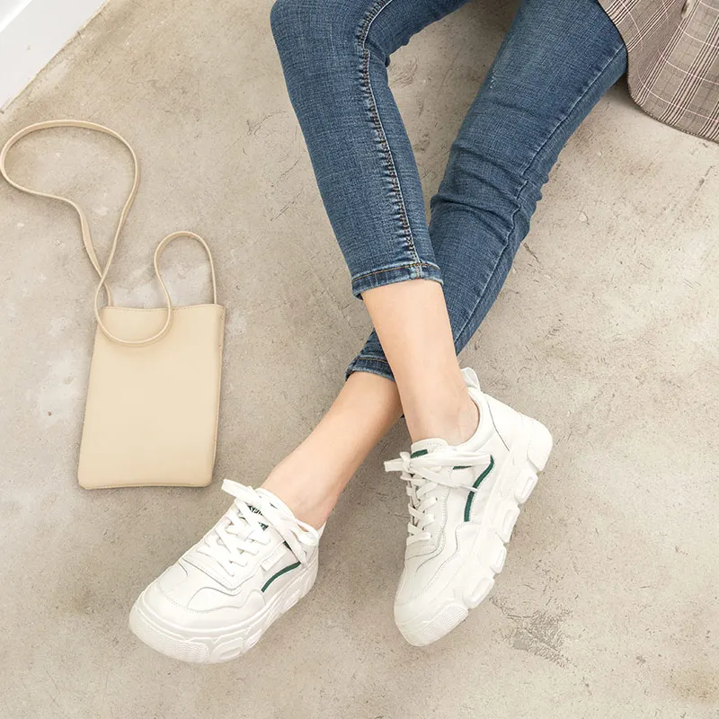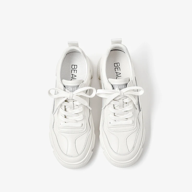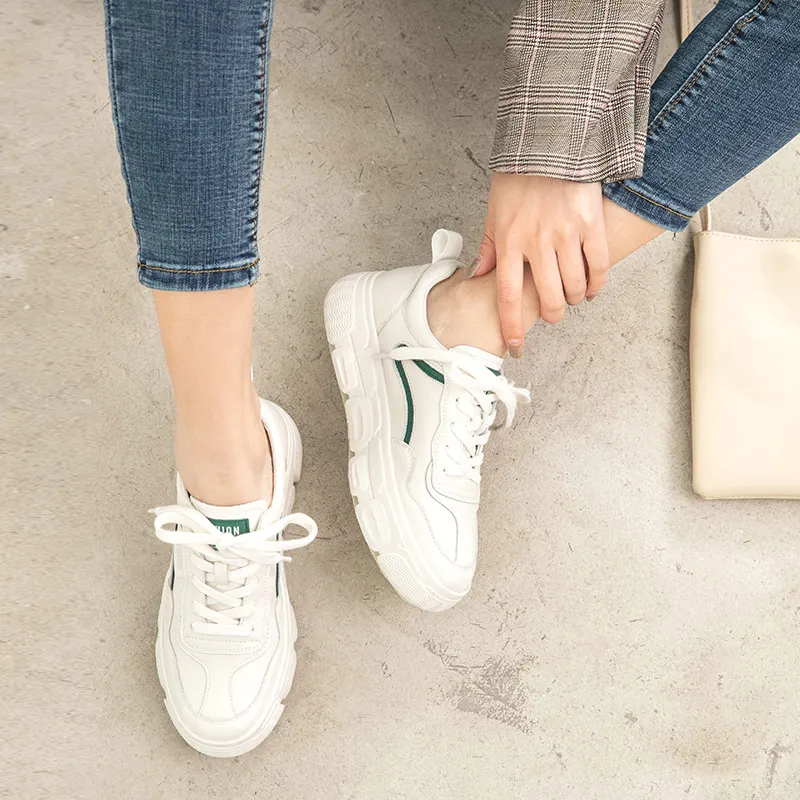 Кроссовки женские из натуральной коровьей кожи, на платформе, с круглым носком, на шнуровке, на толстой подошве, повседневные, 29542
