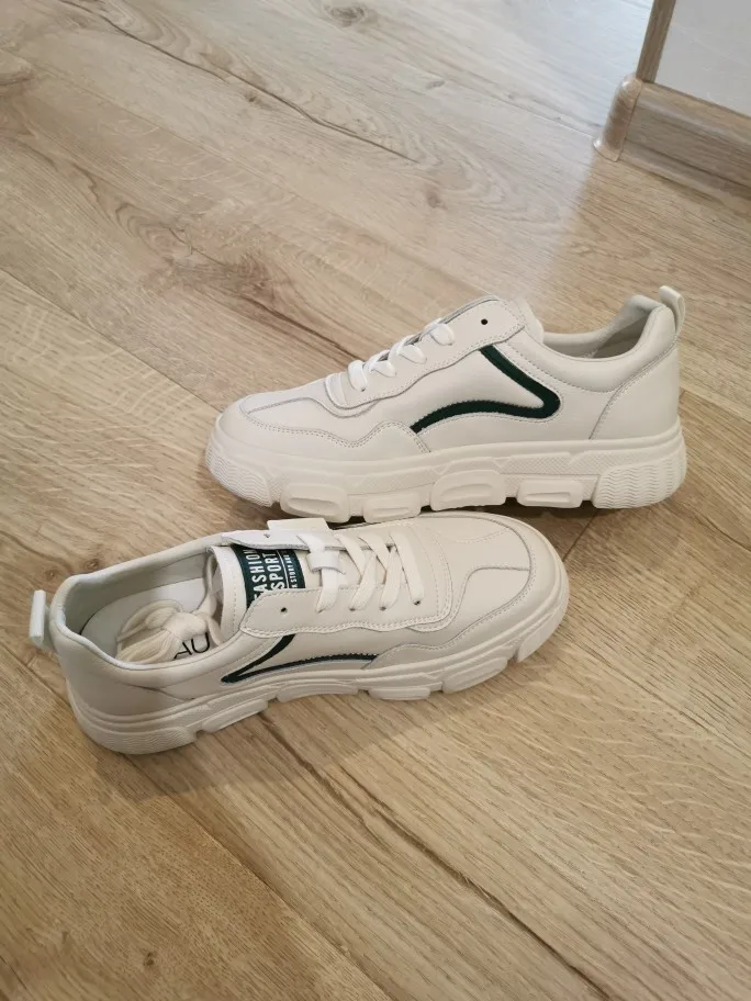 кроссовки очень качественные, кожа натуральная. запаха сильного нет. на ноге сидят удобно. посылка пришла быстро
