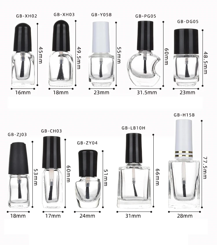 50 шт.лот 2 мл-15 мл пустые стеклянные полированные Бутылочки для ногтей с кисточкой прозрачные стеклянные бутылочки для лака для ногтей косметический контейнер