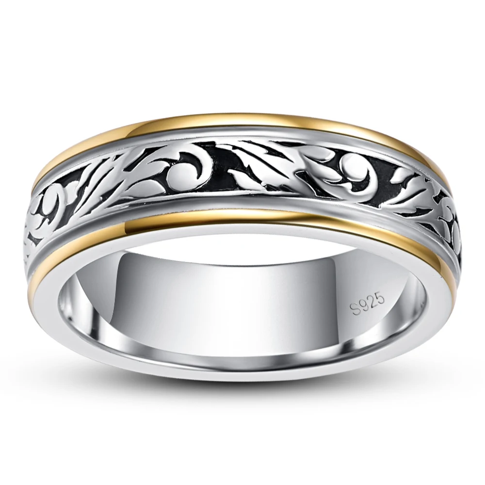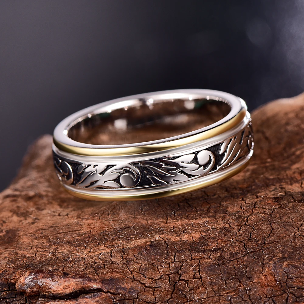 BONLAVIE 6 мм Ретро резное двухцветное покрытое серебром 925 пробы кольцо для мужчин и женщин обручальное мужское и Свадебное