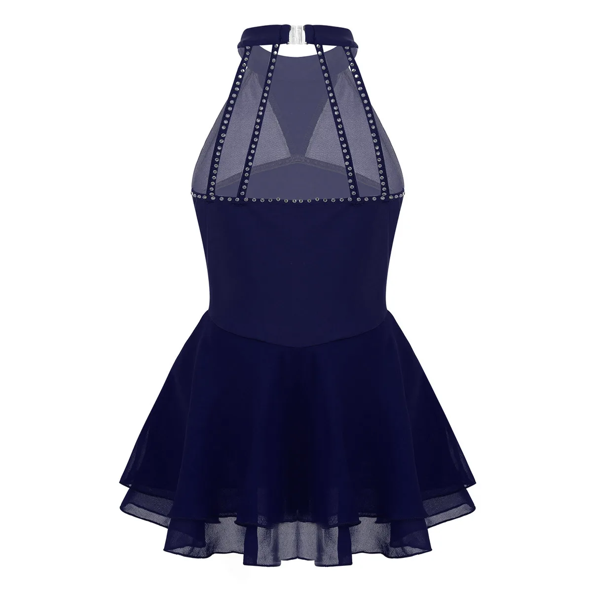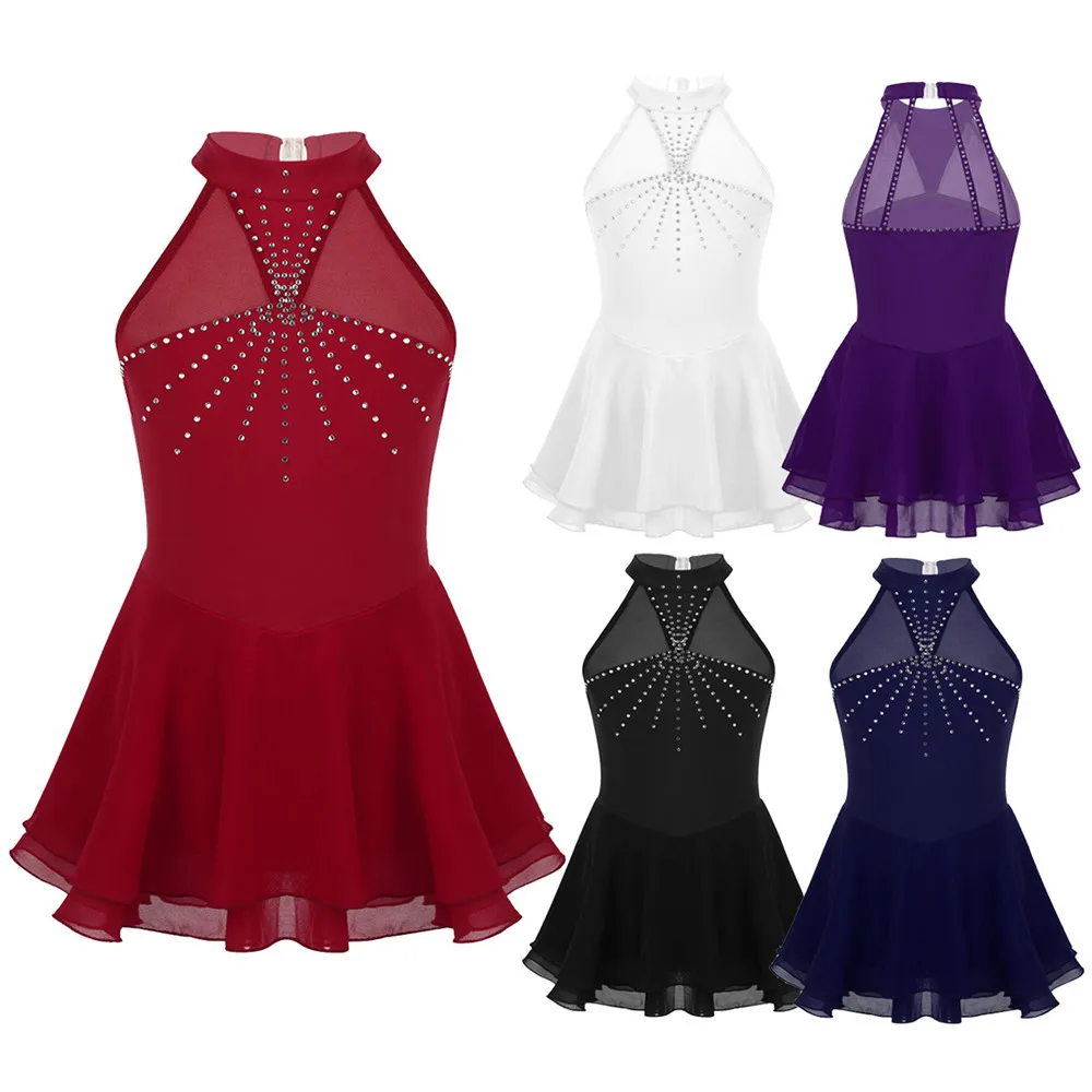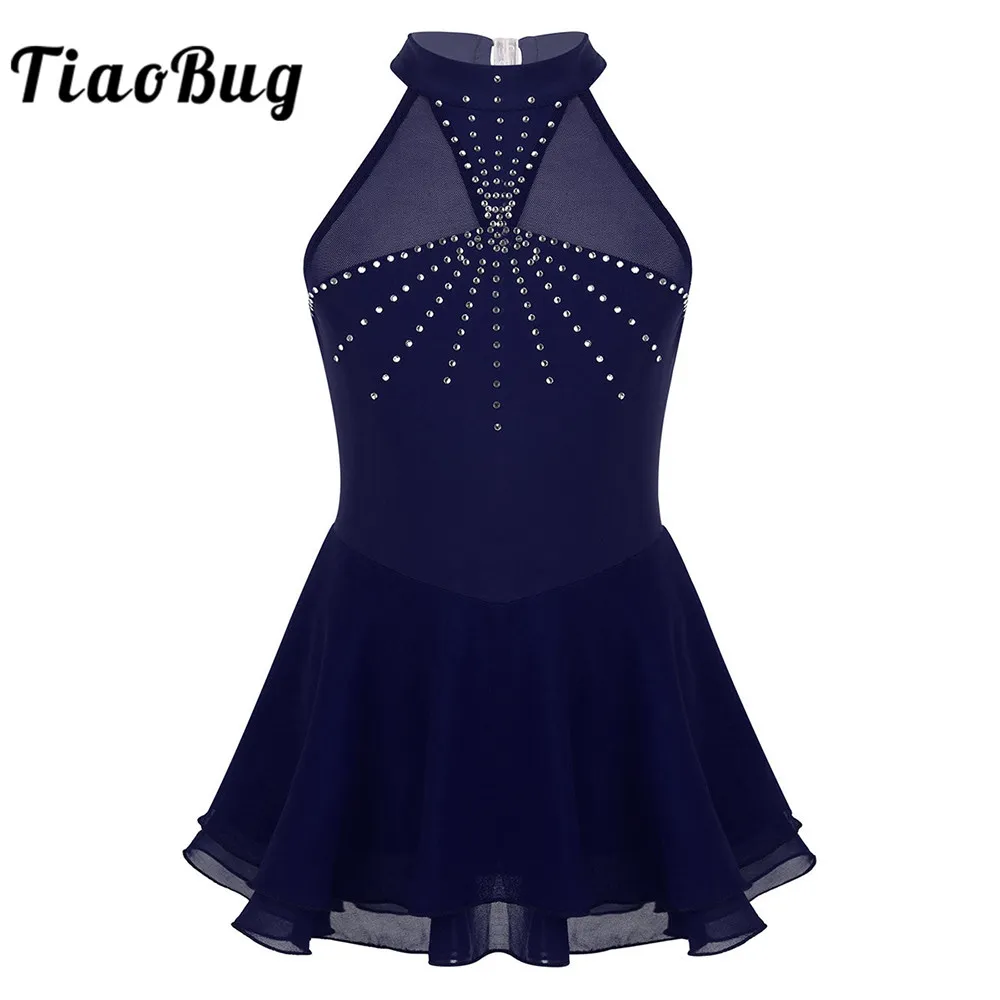 TiaoBugдетское блестящее стразы на сетчатой основе для девочек без рукавов, гимнастическое трико, балетное платье для фигурного катания, Одежда для танцев