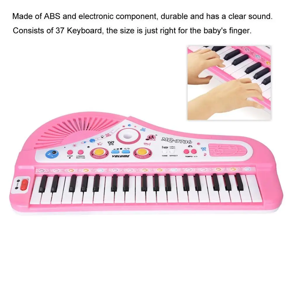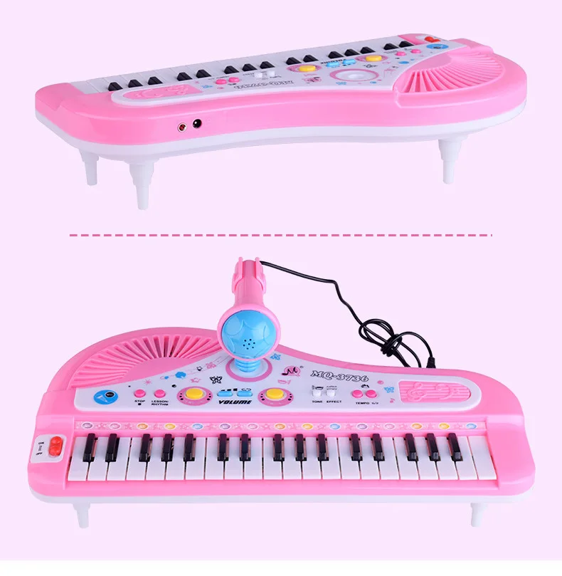 Симпатичная розовая 37-клавишная клавиатура с микрофоном, музыкальная цифровая электронная заряжаемая детская музыкальная пианино, Обучающие Развивающие детские игрушки
