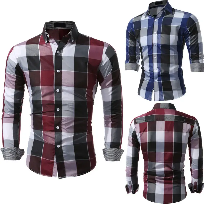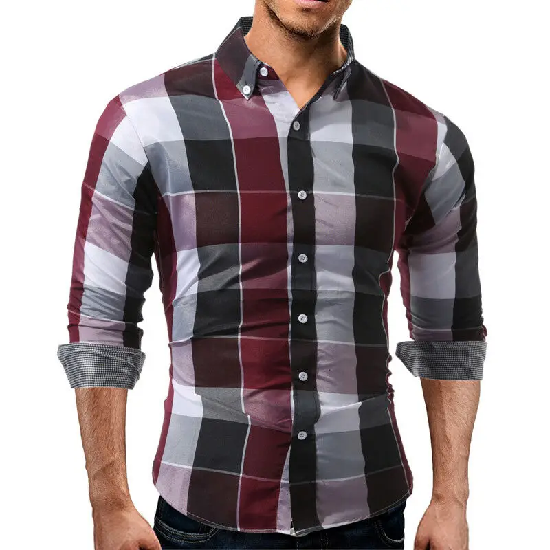 Модная мужская приталенная хлопковая рубашка с длинными рукавами, клетчатые повседневные клетчатые топы на пуговицах