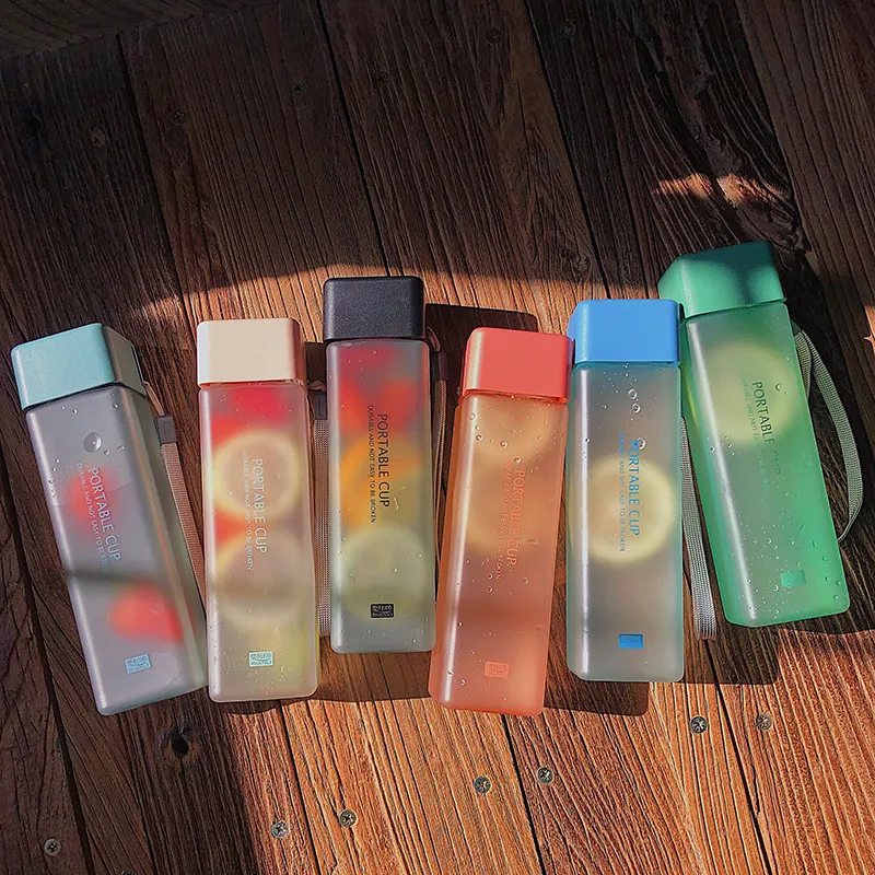 Спортивная бутылка для воды, милая квадратная матовая прозрачная бутылка для молока, посуда для напитков на открытом воздухе, для скалолазания, туризма, кемпинга