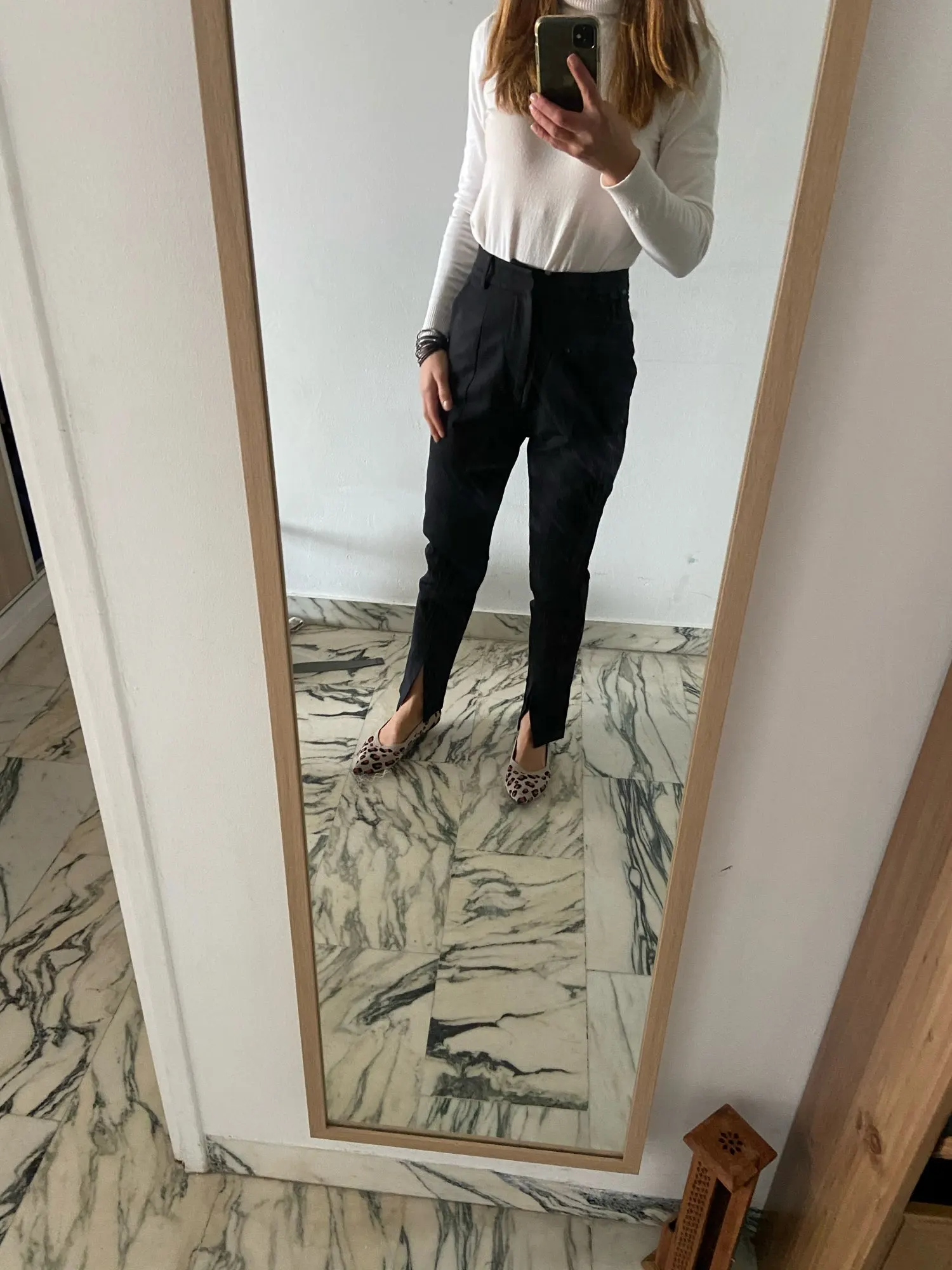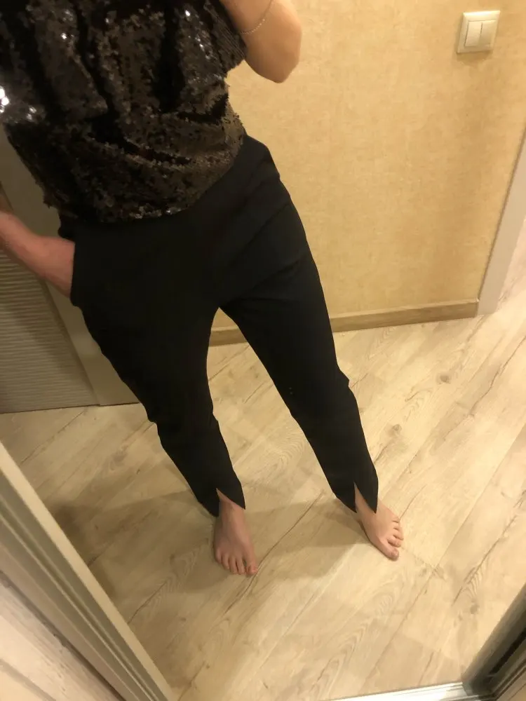 брюки супер, но ткань еле отпарила и к сожалению одна брючина вшита криво и разрез съезжает влево, некрасиво, вернула, но буду заказ другие, так как очень классные!