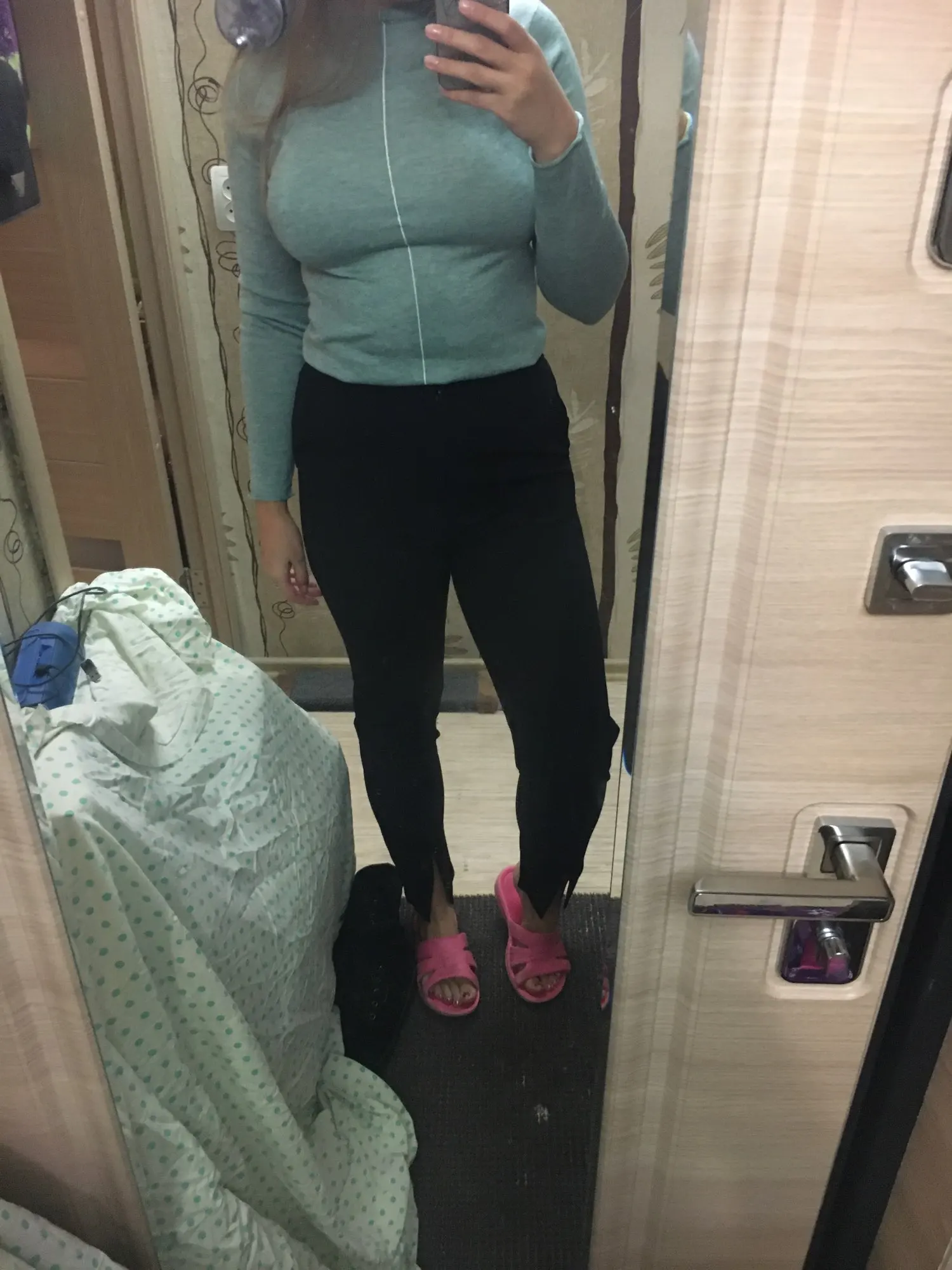 Брюки - огонь! С моим ростом в 161 см у меня даже в лоферах бесконечные ноги - никаких каблуков не надо! Размер М на 71/94 сел отлично, не в облипку - влезет и более уверенный тазобедренный сустав, талия с большими параметрами - вряд ли. Ткань немного тянется, дискомфорта при длительном сидении брюки не доставляют, при этом выглядят не лосинами - имеют деловой стиль. И да - после распродажи добрались в Питер за 10 дней