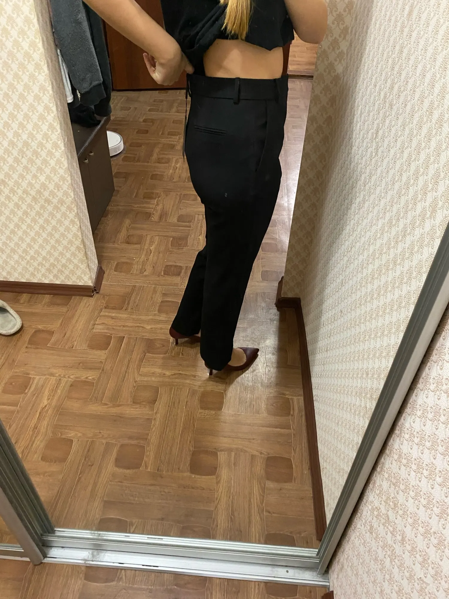 Брюки отличные по качеству! На рост 172, 75/98(100) взяла L. С каблуками норм, думаю, лучше б наверно был бы М размер. Ткань тянется, если ножки стройные, берите свой наименьший размер ( мой М и L на али, значит - М наименьший)