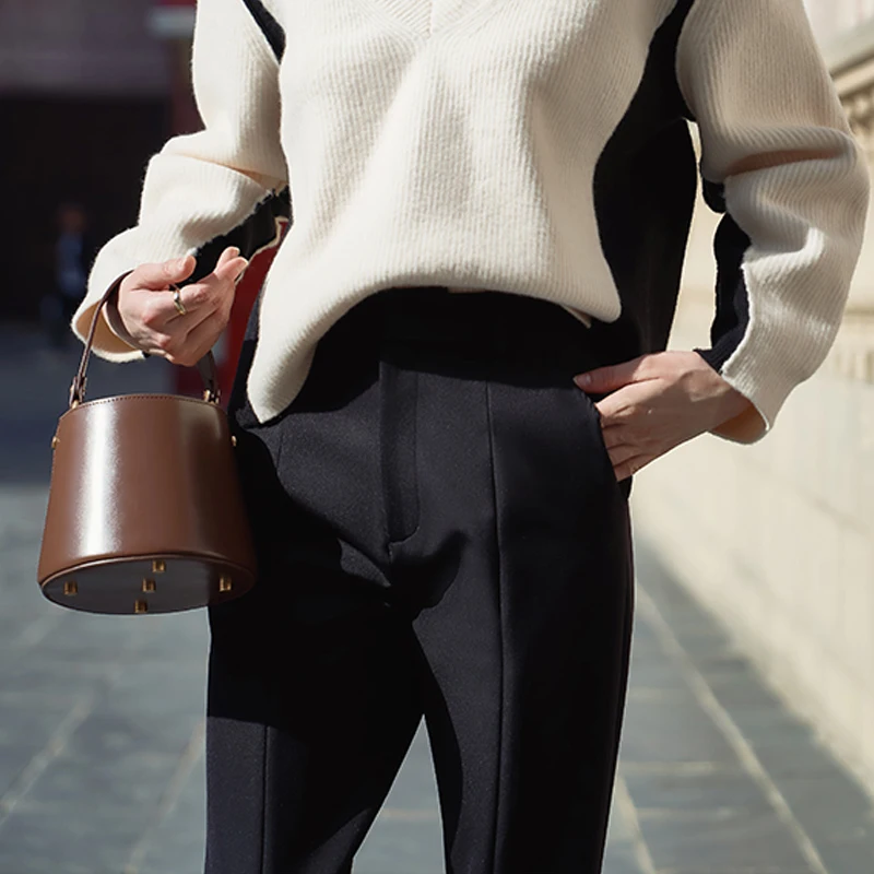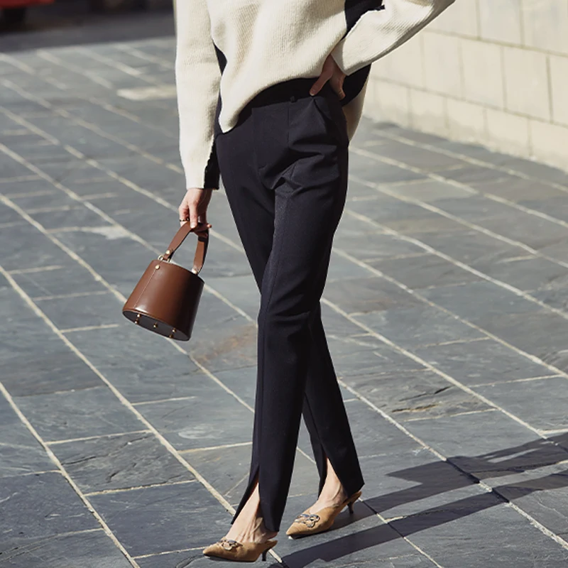 Брюки-карандаш женские черные, с разрезом, весна
