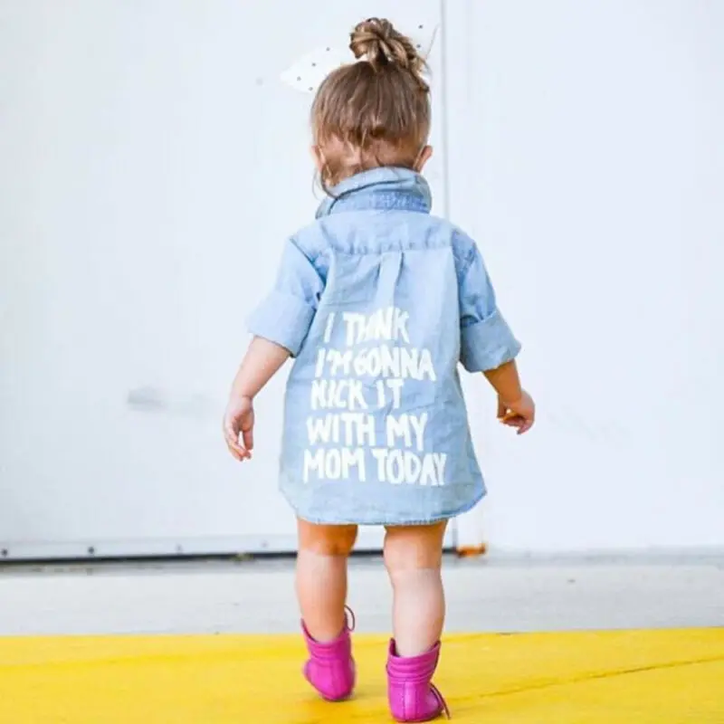 Детская джинсовая рубашка, с длинным рукавом и надписью, на осеньзиму