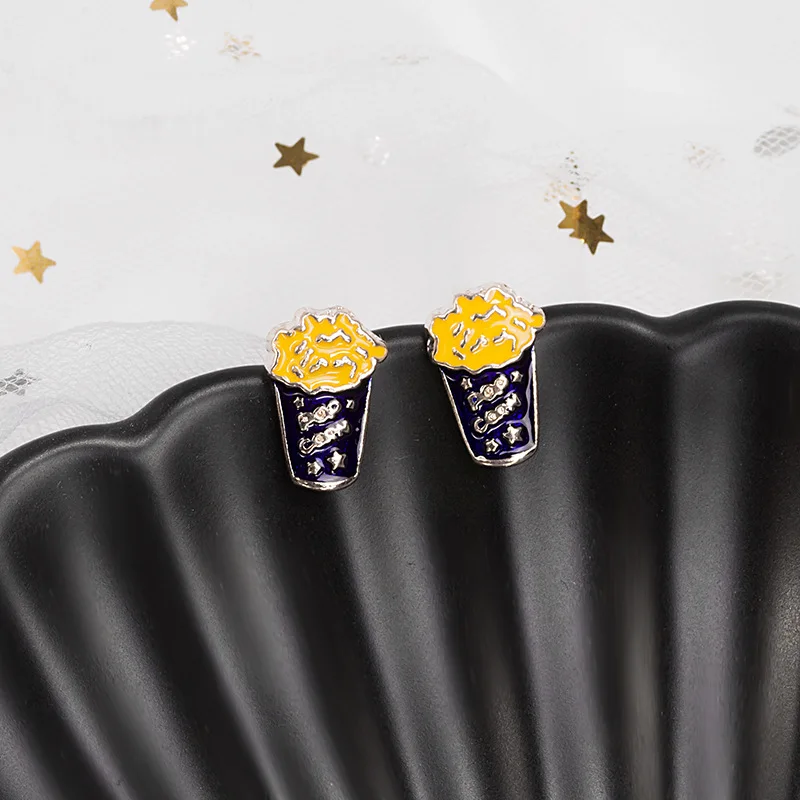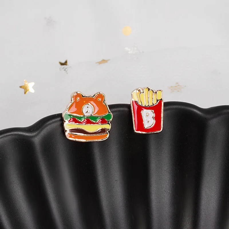 Женские милые серьги-гвоздики, мини-гамбургеры, фрукты, яйца, бокал, печенье, модные креативные украшения