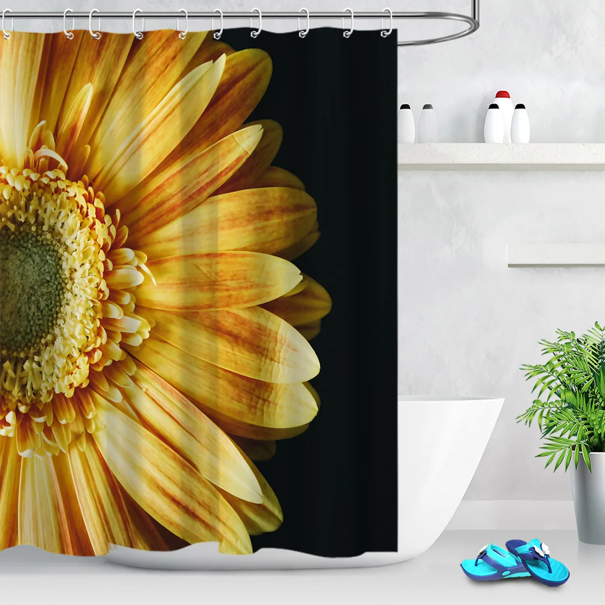 Водонепроницаемая полиэфирная ткань, занавеска для ванной, желтые цветы, Подсолнух, занавеска для ванной, моющаяся занавеска для душа, с 12 крючками