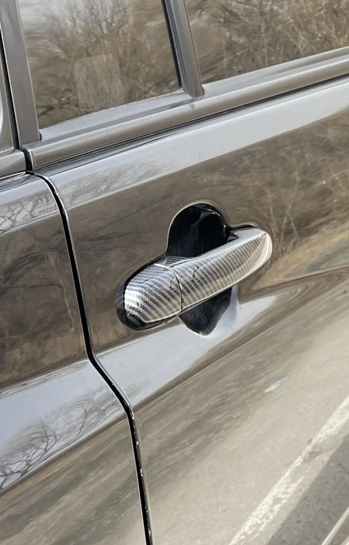 Глянцевые черные автомобильные дверные ручки из углеродного волокна...
