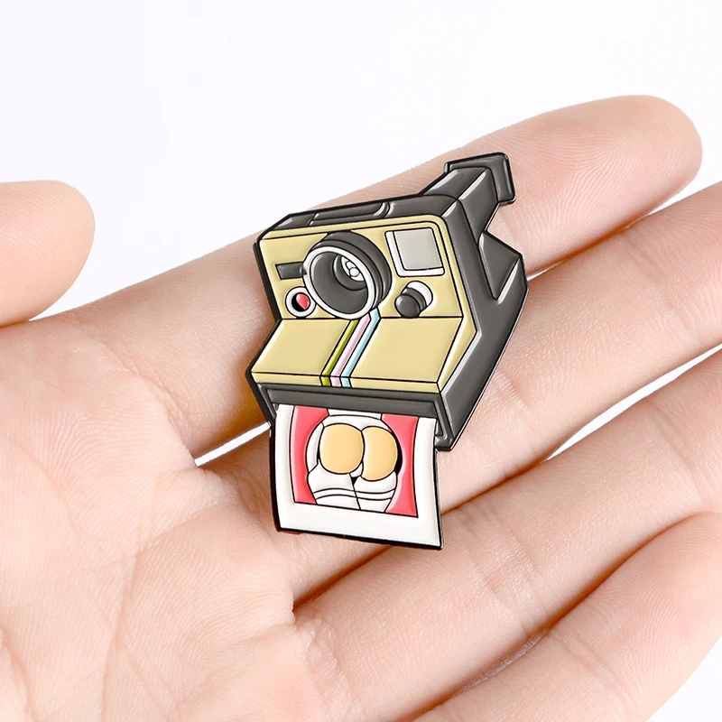 Винтажная эмалированная булавка для камеры сексуальный значок с фот...
