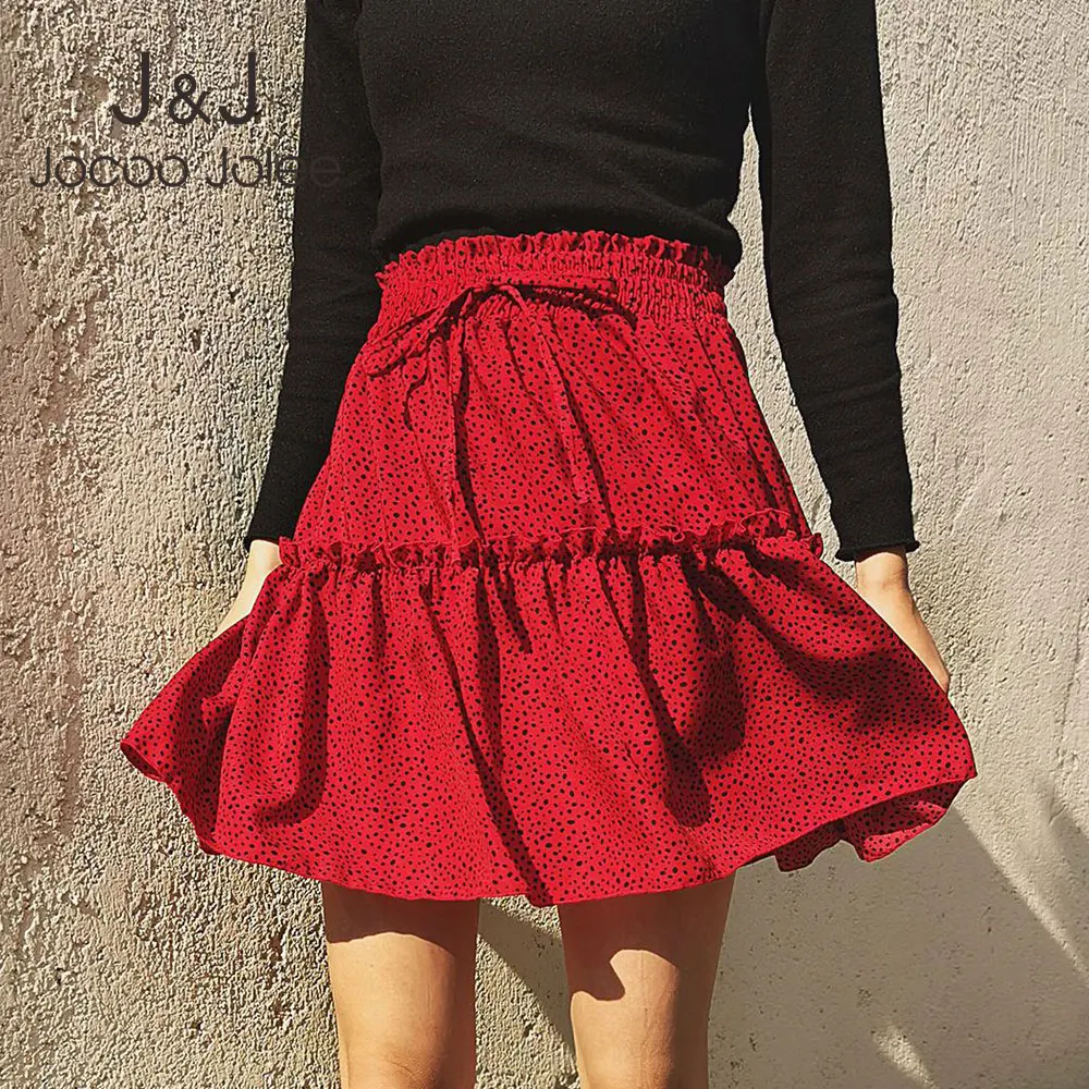 Женская богемная шифоновая короткая юбка Jocoo Jolee, летняя повседневная плиссированная пляжная мини-юбка с высокой талией, завязками и оборками