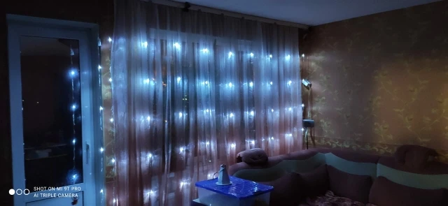 Отличная гирлянда! Упакована была так хорошо, что кидай хоть с 10-го этажа ей ничего не будет. Повесили в большой комнате на окно. Регулируется интенсивность метеоритного потока. Примерно 8 режимов.
