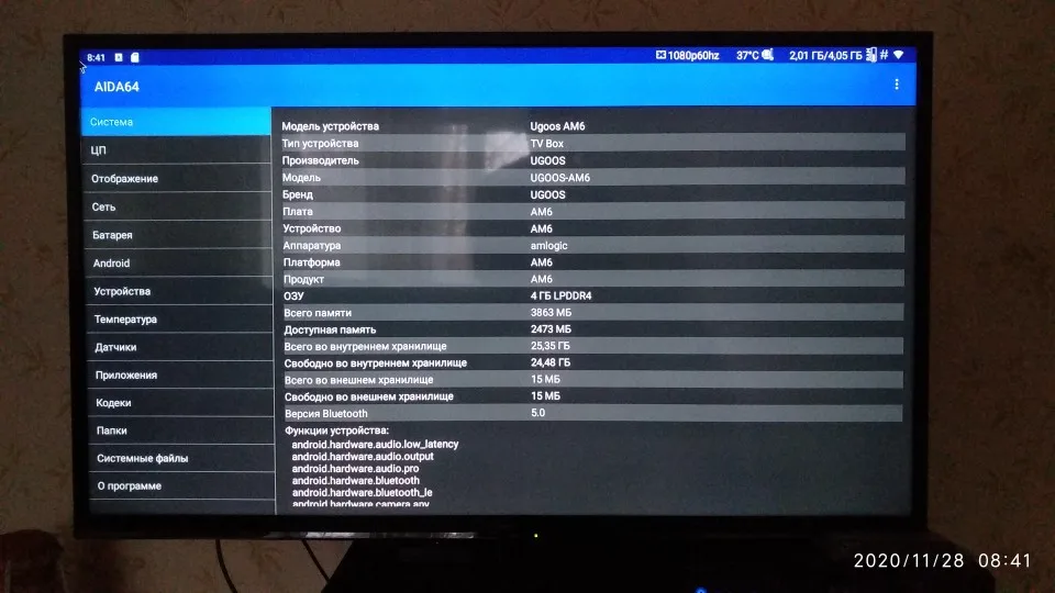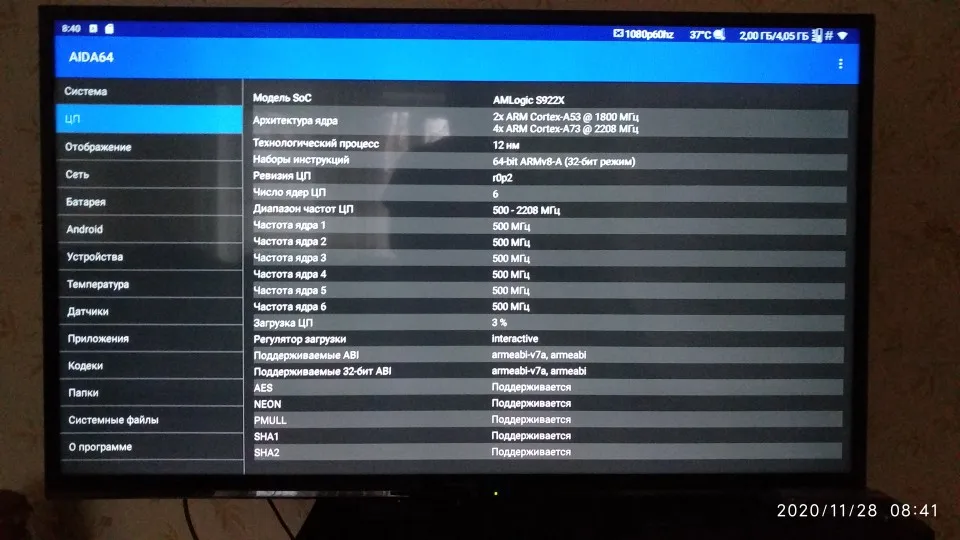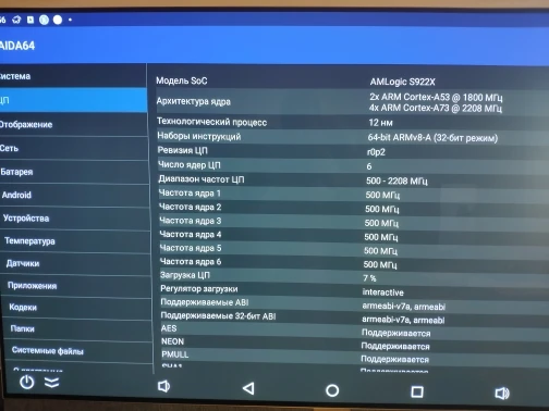 Приставка была так старательно упакована, что я сначала и не понял, что в пакете приставка. Коробка поэтому доехала в идеальном состоянии. Теперь по поводу самой приставки. Корпус металлический. Питание 12 (!) В. Это, скорее, уже мини ПК по внешнему виду. При загрузке и в "Об устройстве" идентифицирует себя как AM6. И только поле с серийным номером показывает, что это всё-таки AM6 PLUS. Aida64 показывает 6 ядер: 2 по 1.8 ГГц и 4 по 2.2 ГГц. Так что всё по-честному.