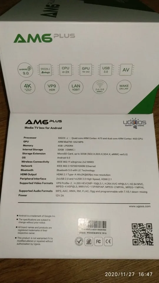 ТВ-приставка Ugoos AM6 AM6B plus, Android 9, 4 + 32 ГБ