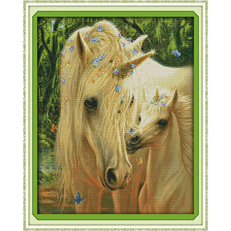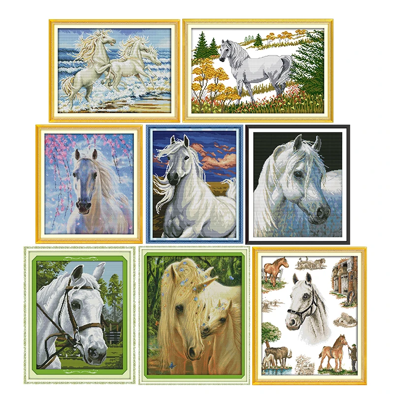 Наборы для вышивки крестиком Серия White Dragon Horse 11CT14CT Наборы для вышивания с принтом DMC Наборы для вышивания, Декор