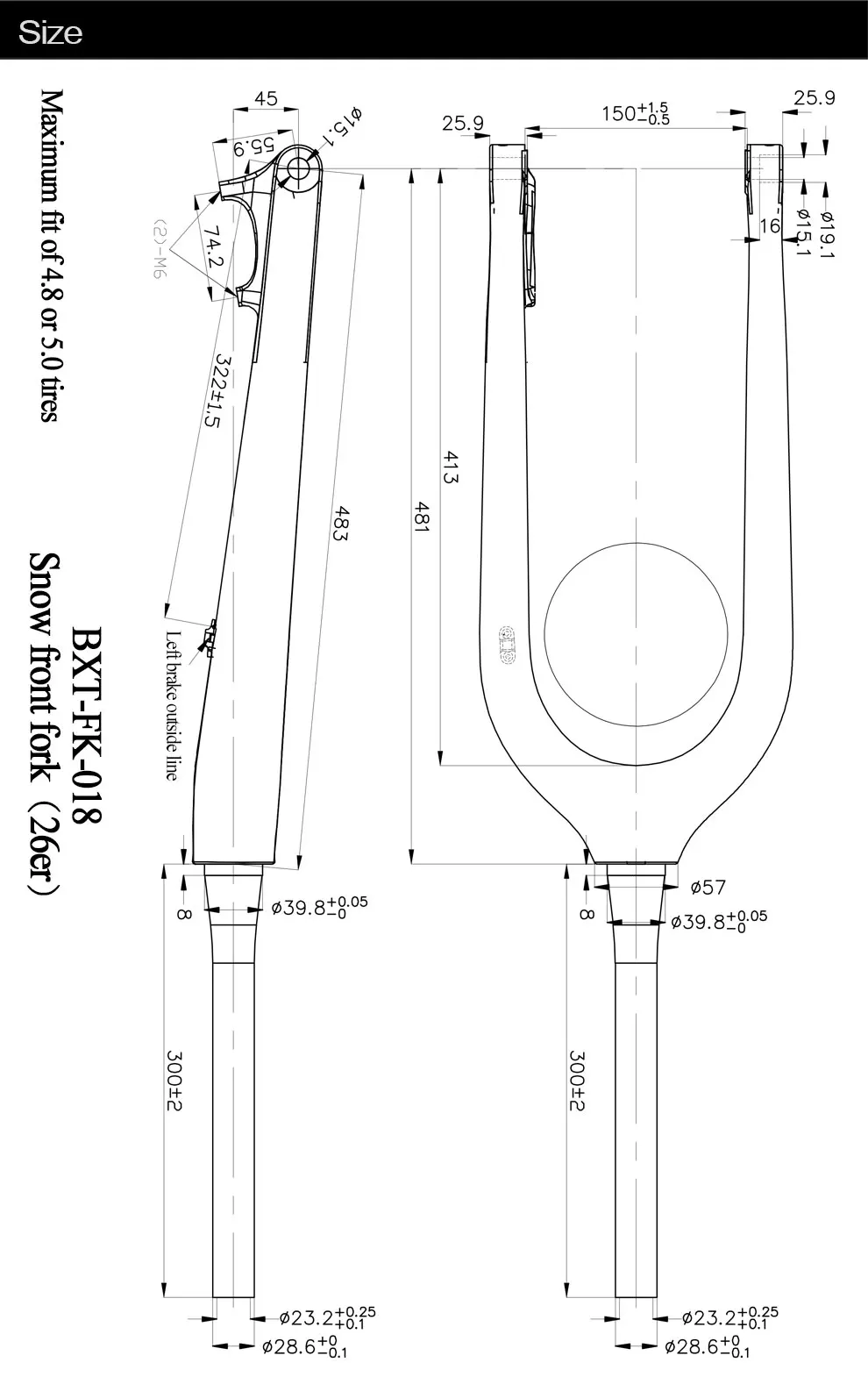 Полностью углеродная 26er Толстая Велосипедная вилка/вилка для снежного велосипеда Размер: 26er Цвет: черный матовый/глянцевый Дисковый тормоз: 160 мм тормоз Подходит для шин: 4,8 или 5,0 шин