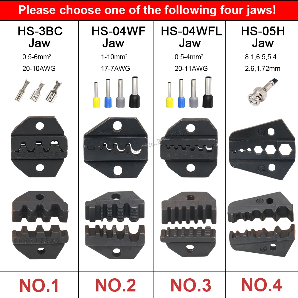 Обжимные губки HS, плоскогубцы 03BC 4,8 6,3, изоляция трубки, неизолированные флажки, клеммы для коаксиального кабеля, обжимные инструменты, наборы штампов