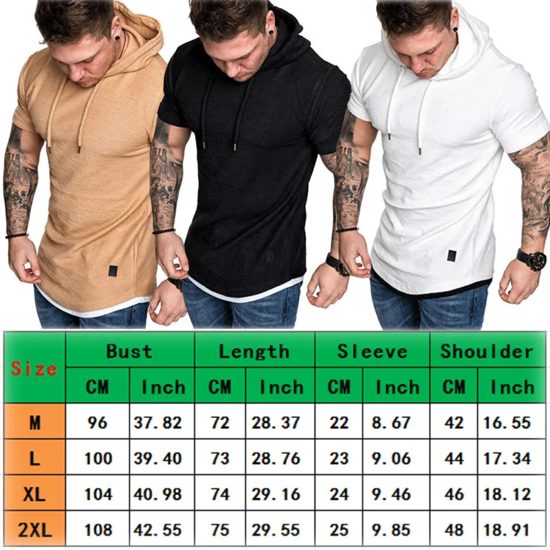Футболка мужская однотонная с капюшоном, дышащая толстовка с короткими рукавами, облегающая Повседневная рубашка для спортзала, черный красный серый