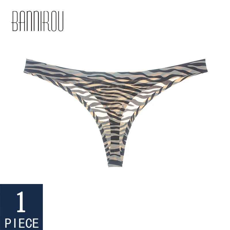BANNIROU Спортивное нижнее белье для женщин Бесшовные ледяные шелковые сексуальные трусики 1 шт. женские мягкие стринги с принтом T-back для женщин Новинка