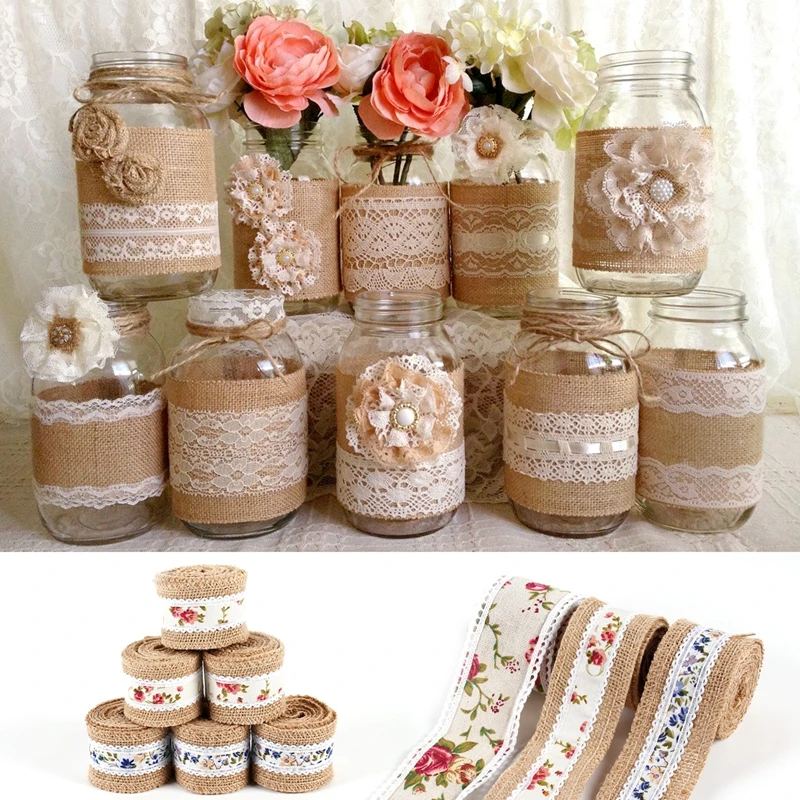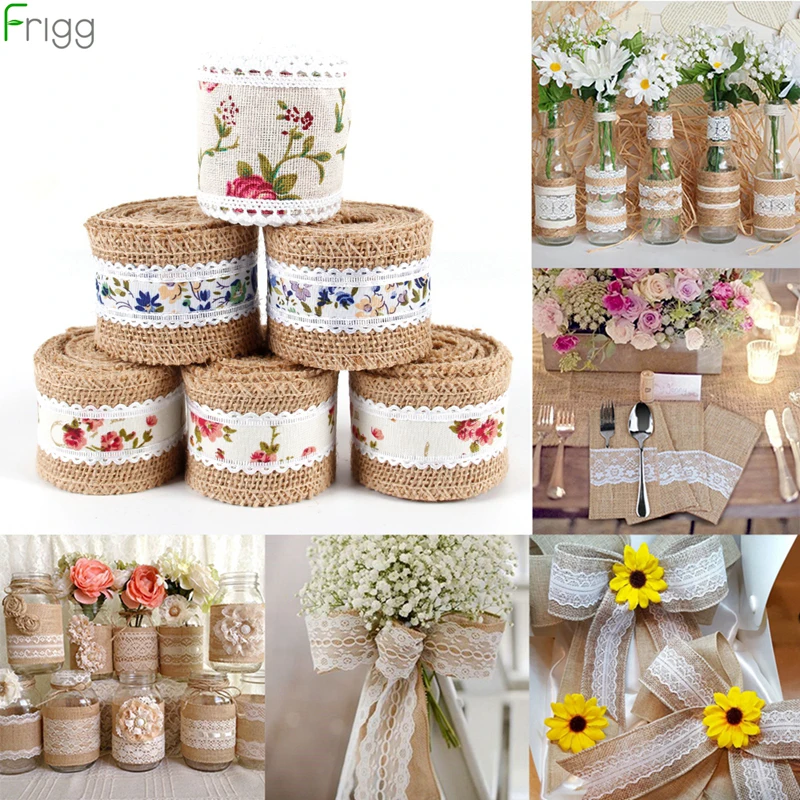 2 млот 5 см Натуральная джутовая лента из мешковины с кружевом из мешковины с белой кружевной отделкой по краю винтажная деревенская свадьба центральные украшения