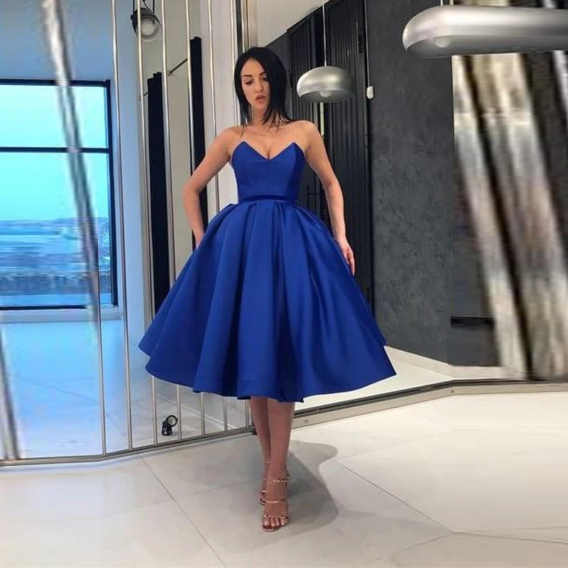 Недорогое Короткое атласное платье Королевского синего цвета для встречи выпускников, милые платья для выпускного вечера 16 для подростков, индивидуальный пошив, Коктейльные Вечерние платья 2020, платья