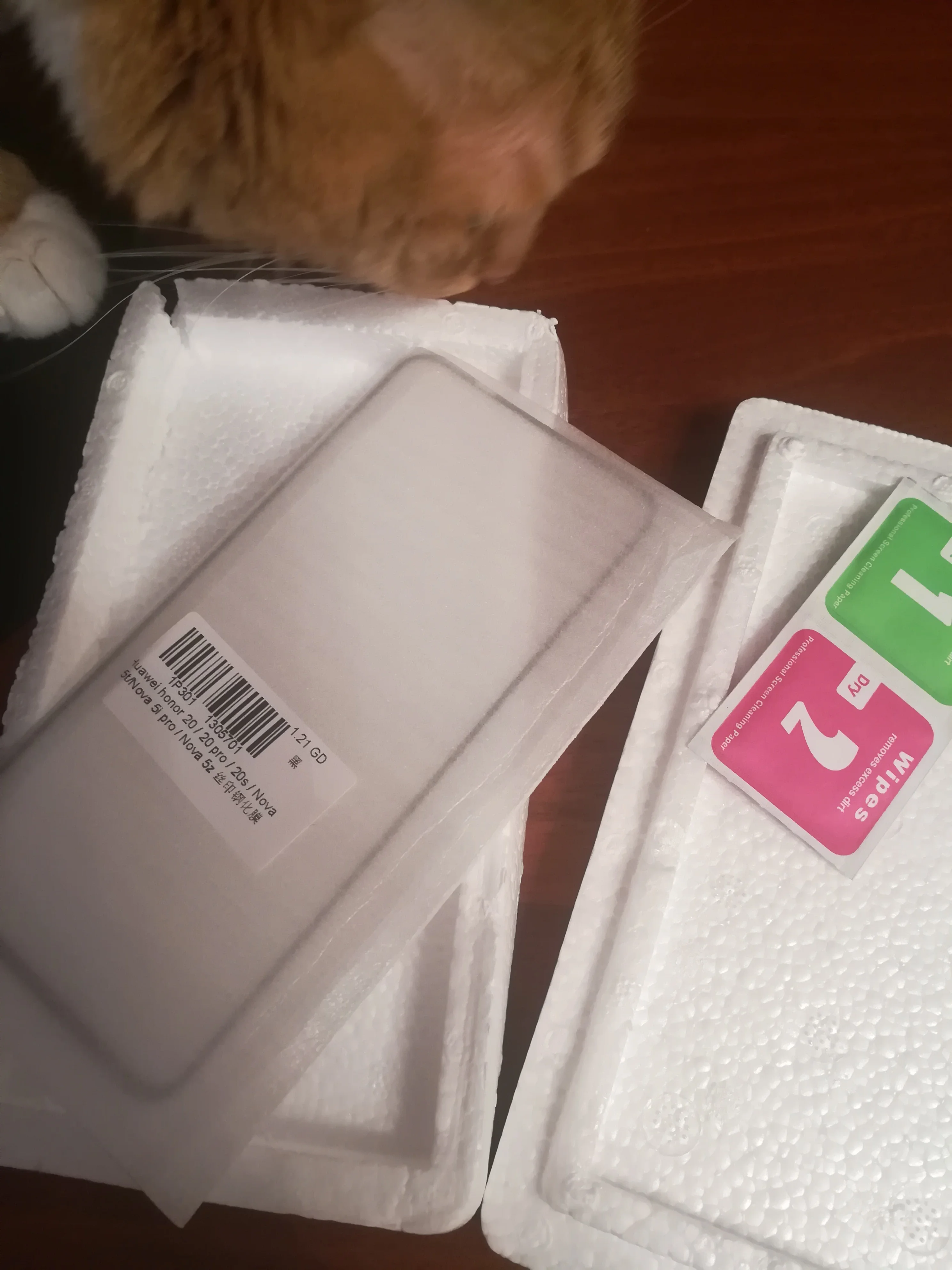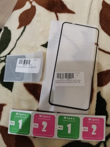 Заказ был оформлен 6 октября, шёл месяц до Кемеровской области. Забрала с почты 10 ноября. Заказывала на Honor 20 Pro, всё подходит. Стекло толстое (фото 4), почти не гнётся, чему я очень благодарна. На камеру пришла плёнка, а не стекло, но она плотная, так что это не страшно (пользовалась плёнкой уже), (фото 2 и 3). В комплекте 2 пары салфеточек (фото 1), маленькие, но не сухие, как бывает, что присылают. Упаковка не повреждена (фото 5). Товар был в защитное пакетике и в коробочке из пенопласта. И это всё дело было упаковано в обычный пакетик для посылок. Заказом довольна, рекомендую, буду заказывать ещё)