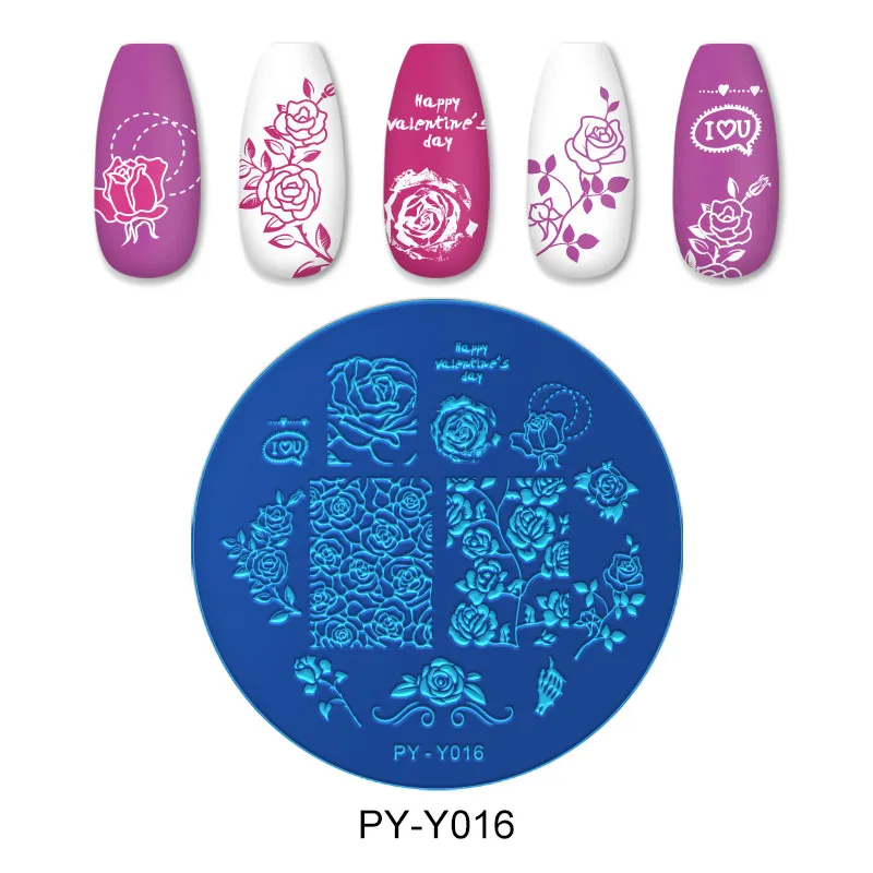 Пластины для стемпинга PICT You на День святого Валентина, из нержавеющей стали с розами, шаблон для дизайна ногтей, трафареты, инструменты для дизайна ногтей