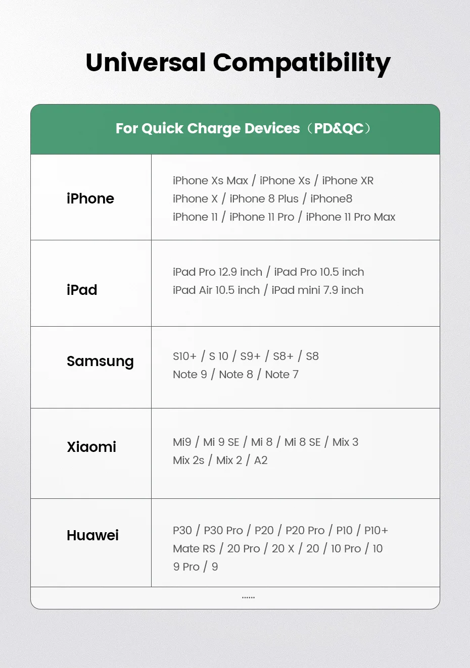 Хорошая, качественная зарядка, поддерживает почти все режимы. вытягивает Huawei p30 pro и планшет Samsung SM-T325