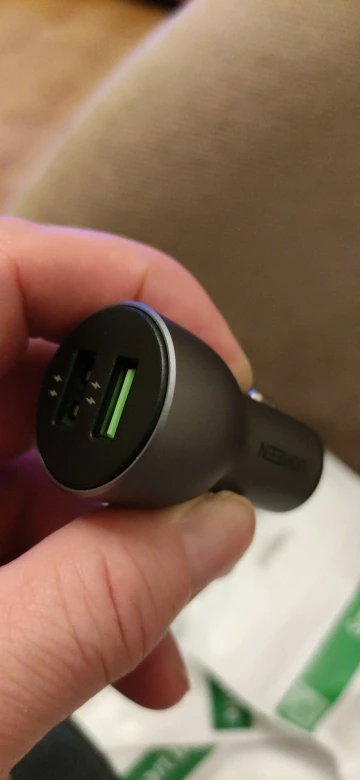 Красивое и тонкое автомобильное зарядное устройство. Один из немногих, которые могут обеспечить 2 порта контроля качества. Может подтвердить Galaxy S10 с помощью простого кабеля Ugreen уведомил о том, что он действительно активирует быструю зарядку. Я думаю, что это хорошее автомобильное зарядное устройство для новейших телефонов и улучшает Мои возможности зарядки в автомобиле.