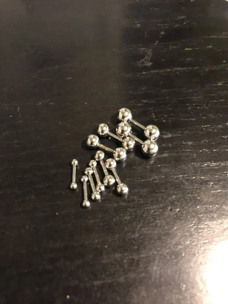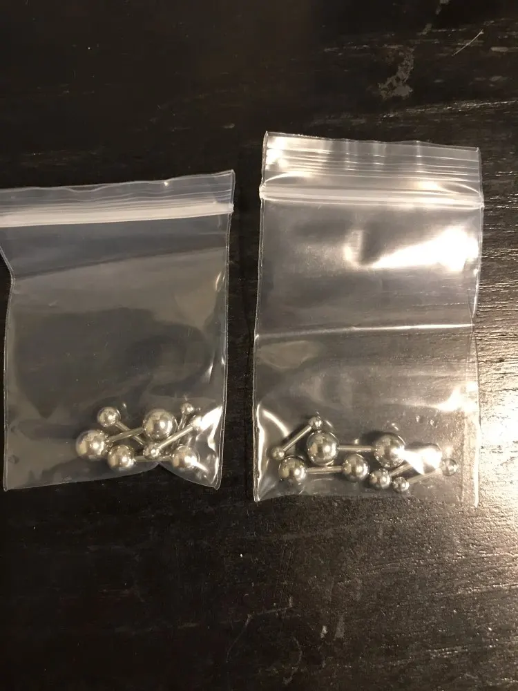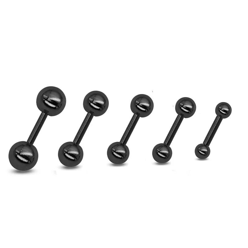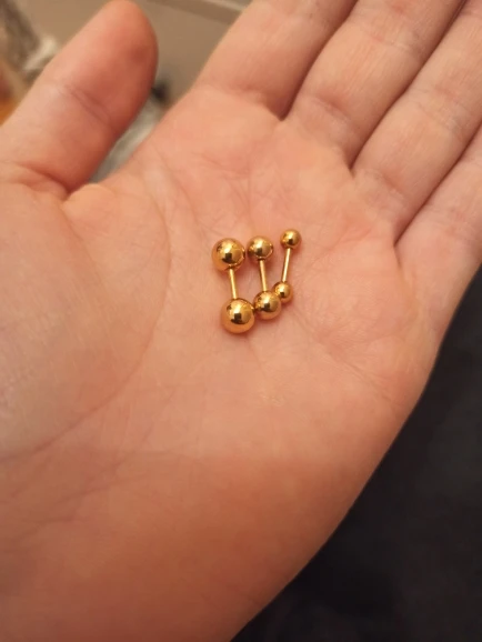 really happy with theese as I have a small eyebrow piercing, as well as old so it is moving out to front, meaning I need shorter and shorter bars and they become difficult to get. may not use larger ball, but bar is what I was after. very good quality. not black metal, just a coating.