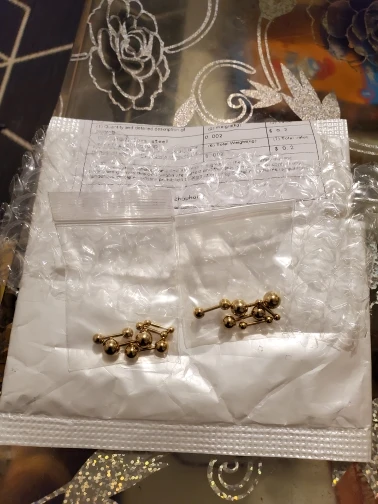 Отличное качество. Hpwever продукт пришел позже. Больше месяца. Если вам нужна штанга для ушей, просто перейдите к ней. Также помните, что они не поставляются парами, они только поставляются в разных размерах. Упаковка тоже хорошая.