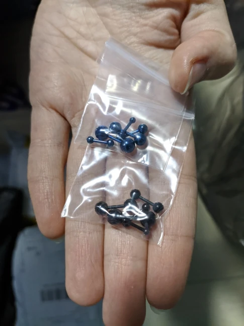 Дошли в полном объёме, нужного цвета! Малышки, подойдут только для ушных проколов, и сами штанги тоньше обычных На 1 фото надеты вторая и третья по размеру (от меньшей) И главное, не сдирается краска, что для меня было очень важно!