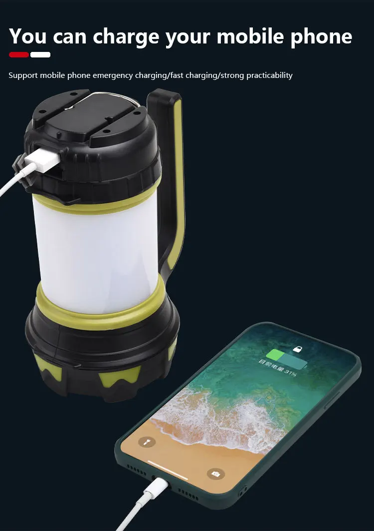 Светильник фонарь для кемпинга, заряжаемый через USB фонасветильник с регулируемой яркостью, рабочий фсветильник светильник, светильник фонарь для поиска, аварийный фонарь