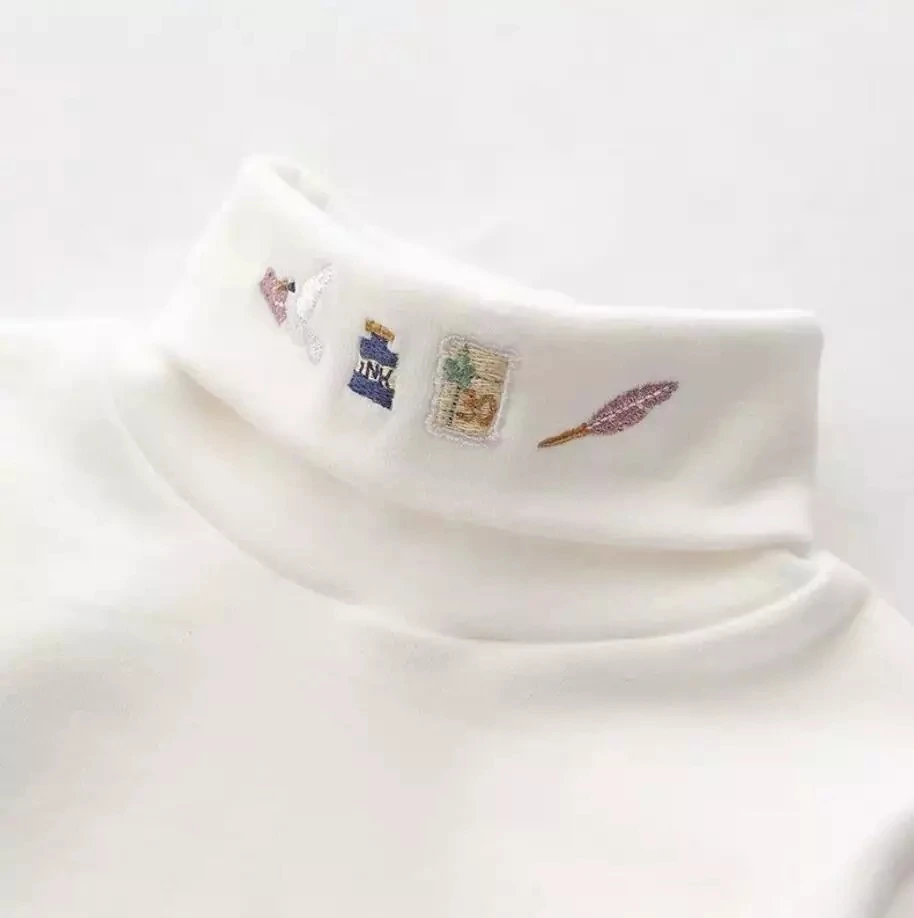Водолазка с вышивкой, с длинным рукавом, для девочек, осенне-зимняя одежда, утепленная детская одежда, хлопковые топы, блузки