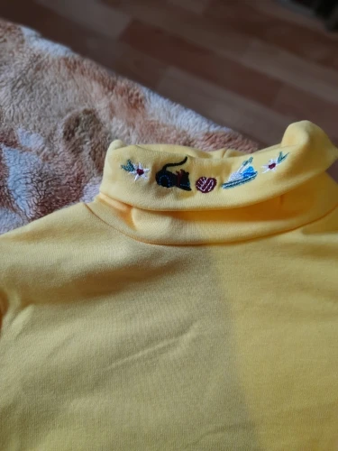 Водолазка выше всех похвал. Моя дочь её ооооооочень любит. Будем брать ещё!!! + Она мягкая + Теплая(в ней не жарко, хотя это надо по ребенку смотреть, моя тепло любит поэтому всё хорошо) + Очень приятный розовый цвет и милая, качественная вышивка на воротнике. Из не больших минусов - немного маломерит. Наши параметры: рост 119 см вес 21 кг водолазка в самый раз.