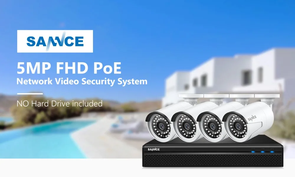Система видеонаблюдения SANNCE HD, 8 каналов, 5 МП, POE, H.264 + NVR, 4X 5 МП, 30 м, EXIR, ночное видение, Всепогодная IP-камера