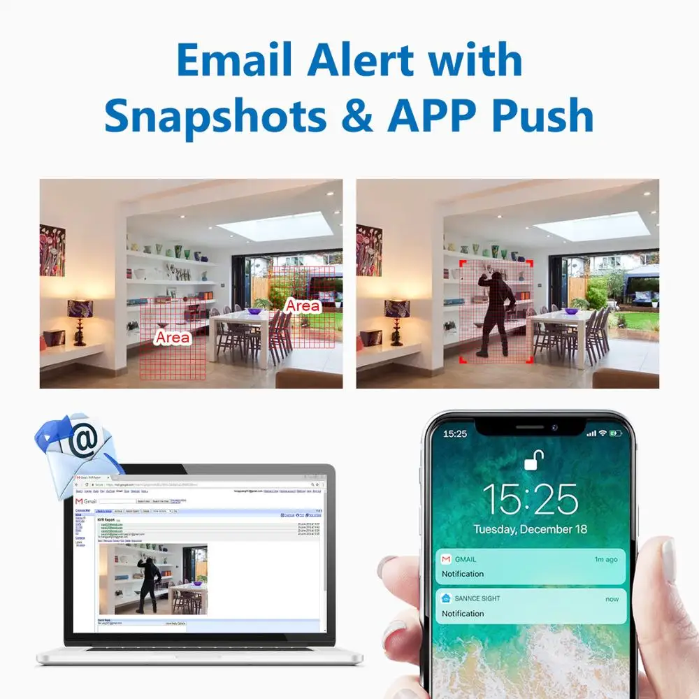 · Оповещение по электронной почте со снимками и нажатием приложения