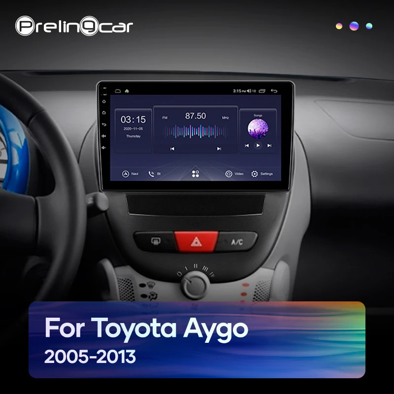 Автомобильная система Prelingcar Android 10,0, сенсорный экран IPS, стерео для Peuget 107 Toyota Aygo Citroen C1 2005-2014 лет, стерео DSP