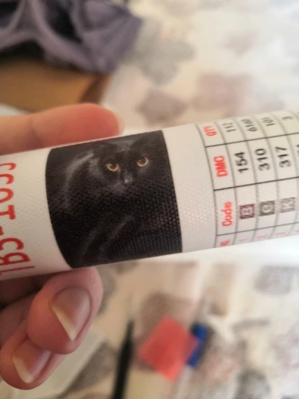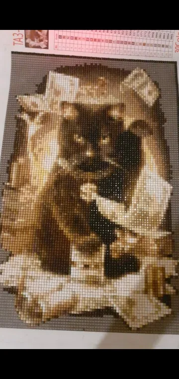 на фото кошку хорошо видно.а вот на вышивке не то.одни глаза.Лапы не видны.