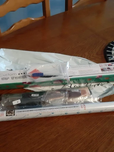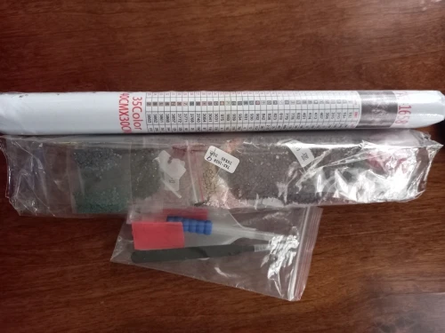 Посылку получила большое спасибо. Заказывала 12.11 пришла 22.12. Коробка в пакете была сильно помята, но это не критично. Полотно намотано на основу и запаяно в целофан и не повредилось. ванночки для алмазиков нет, видимо в набор не входит, не обратила внимание на это при заказе. В целом посылкой довольна. Продавца рекомендую