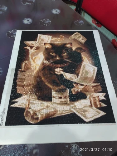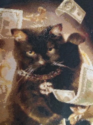 котик отличный. стразы хорошие. пропечатка немного на доларах тяжелая, но в основном всё отлично.