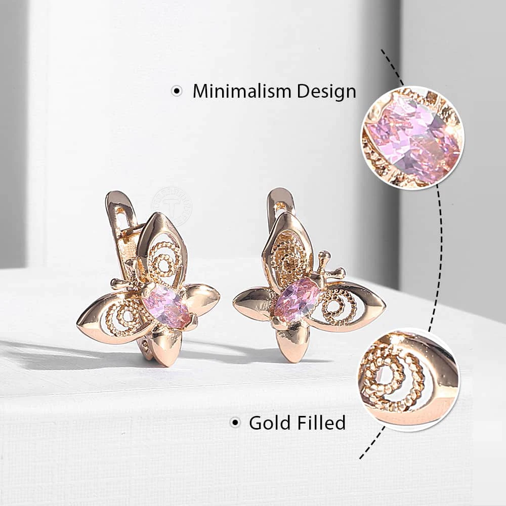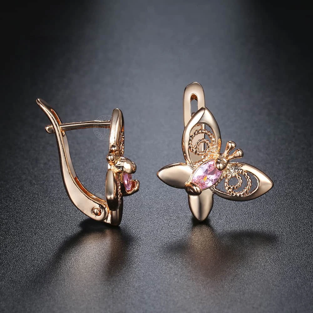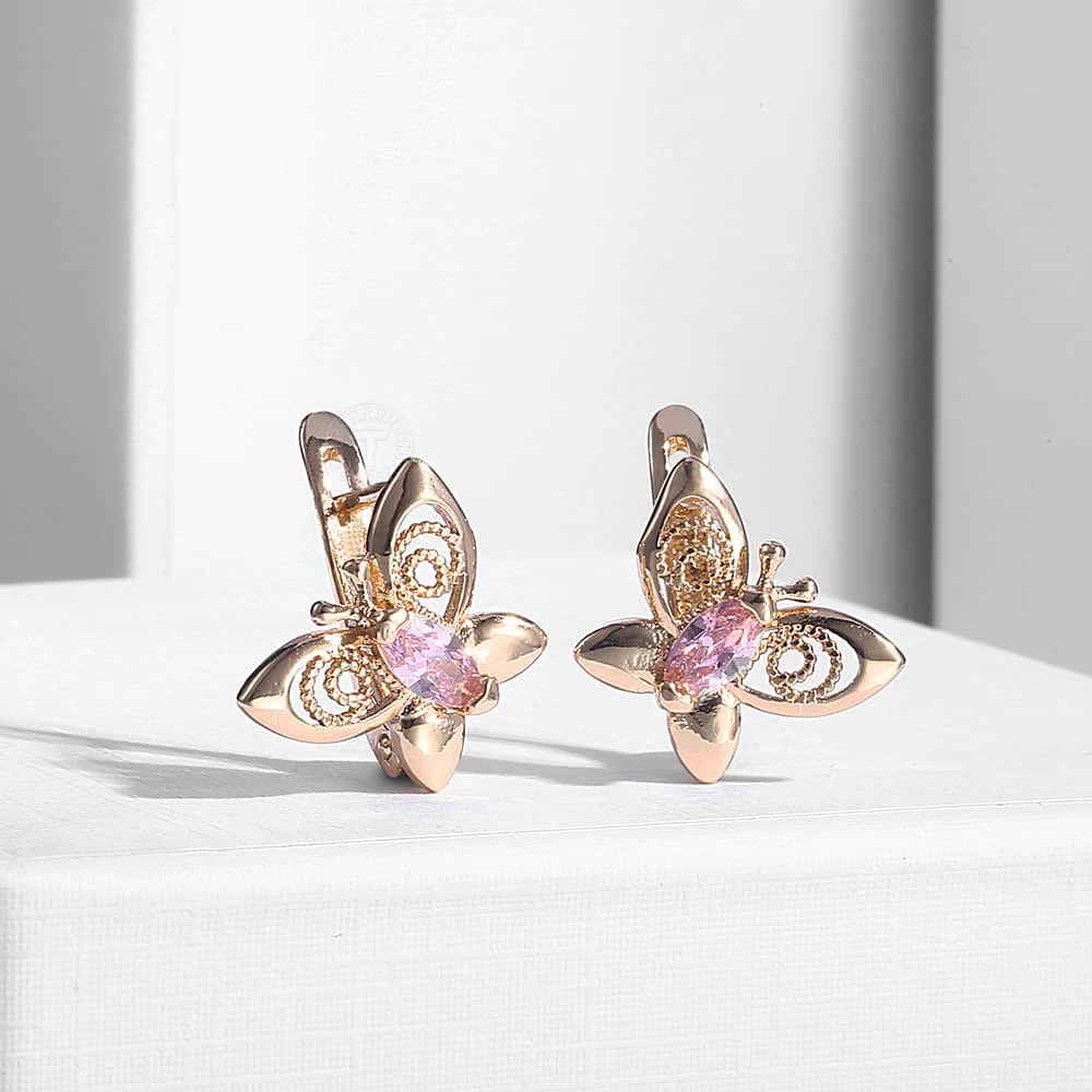 Женские серьги-Бабочки С Розовыми Фианитами, с застежкой из розовог...