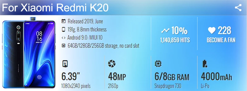 Номер моделиFor Xiaomi Mi 9T Mi 9T Pro For Redmi K20 K20 Pro