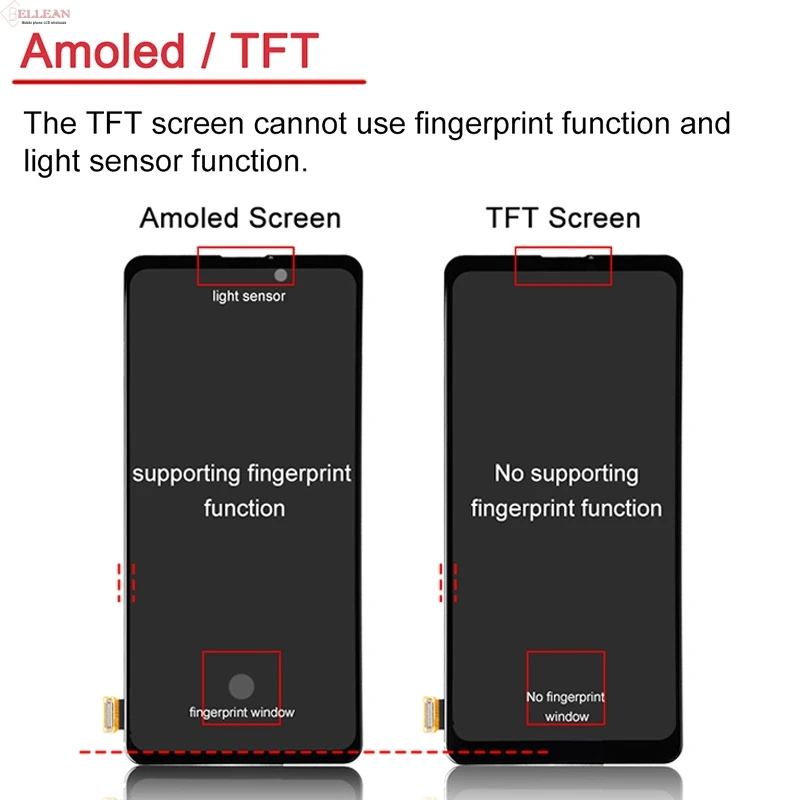 TFT будет толще оригинального качества, он не может на 100% соответствовать раме, а качество TFT не может использовать функцию отпечатков пальцев.