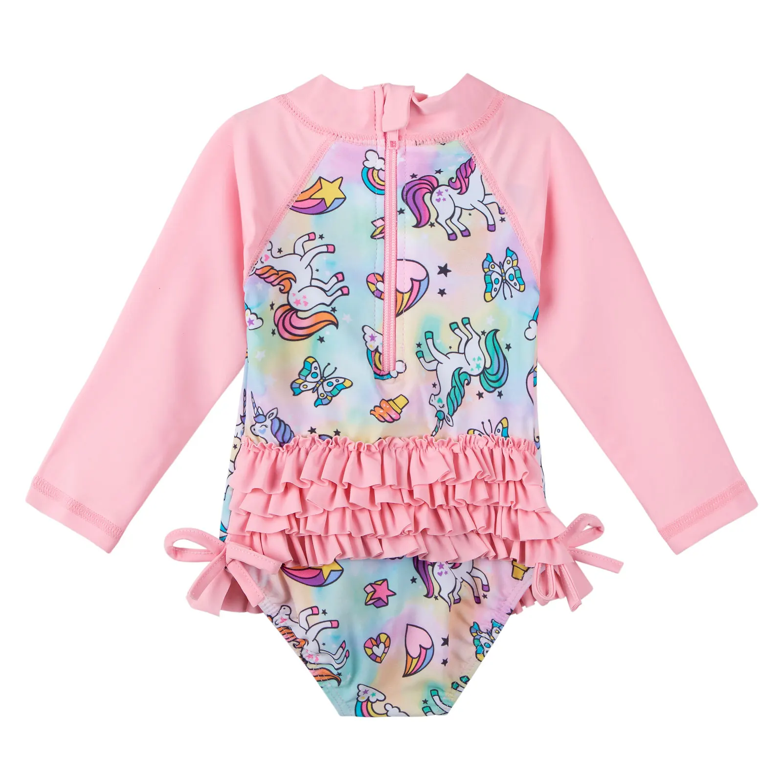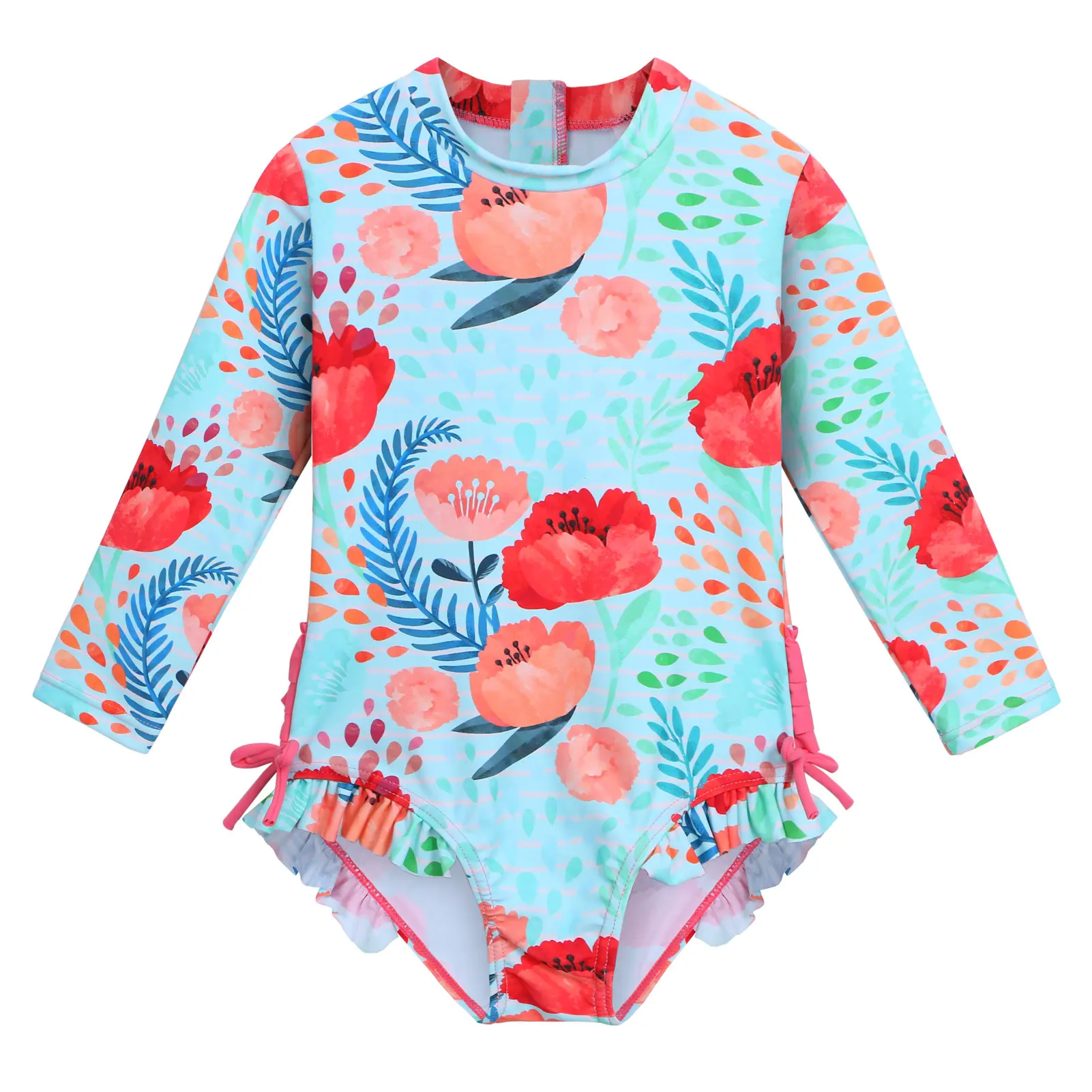 Купальник BAOHULU детский с длинным рукавом, UPF50 + яркий купальник с оборками
