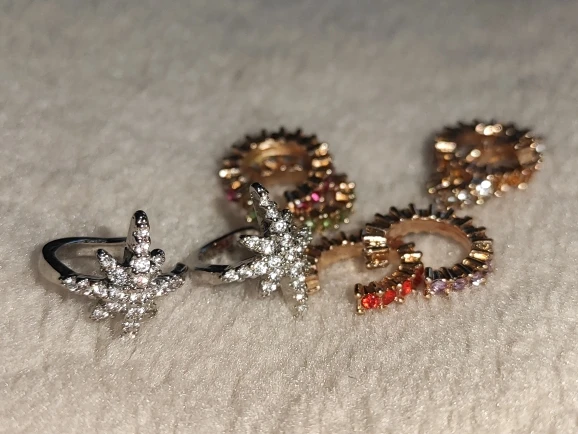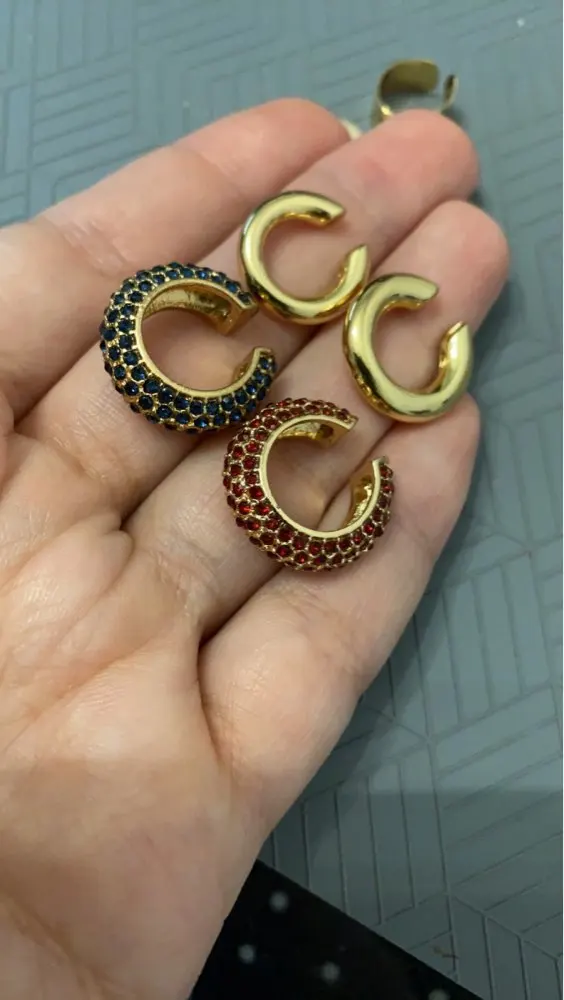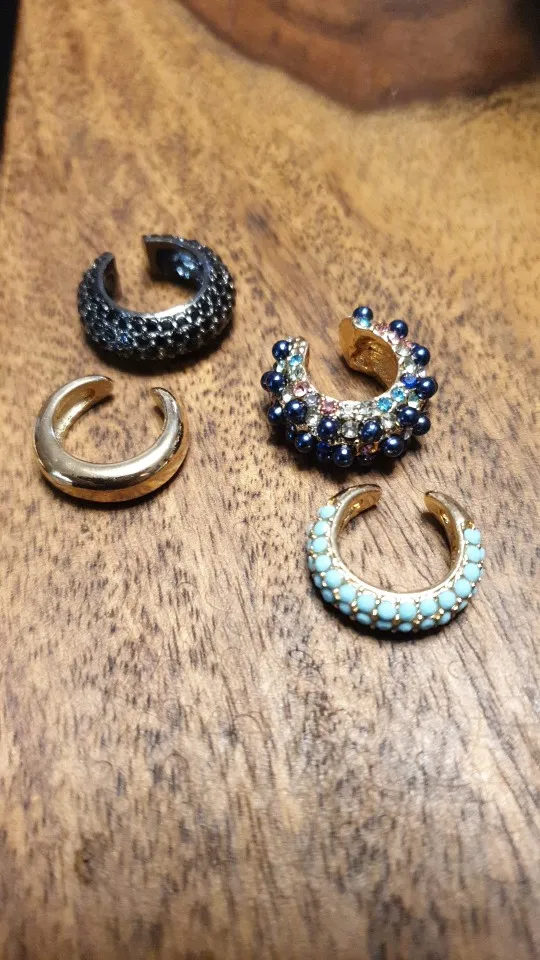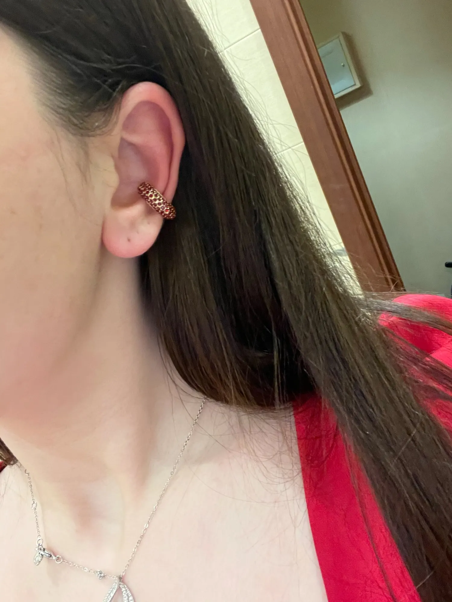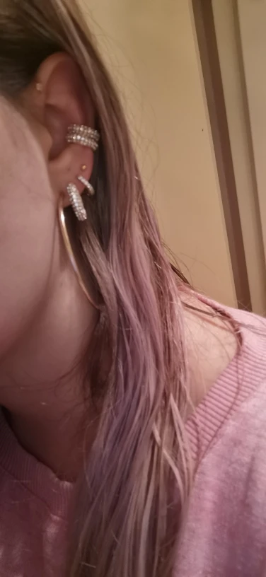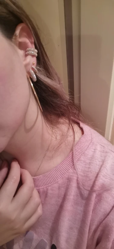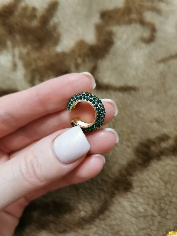 За серьги -5, за удобство -3. Я не понимаю почему они не держатся, слетают на раз два, с верхней части уха вообще съезжают вниз. Как другие надевают? Может у меня такое тонкое ухо?)))) регулировка каффы, хотя бы той, что без камней, упростила бы мне жизнь.