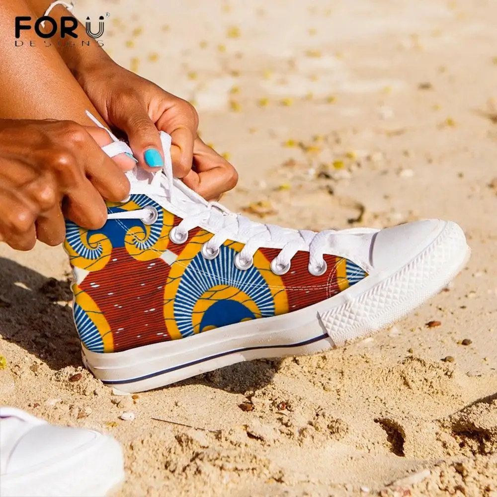 Кроссовки женские FORUDESIGNS, с высоким берцем, в африканском стиле, с цветочным этническим принтом, Вулканизированная обувь, весна 2020